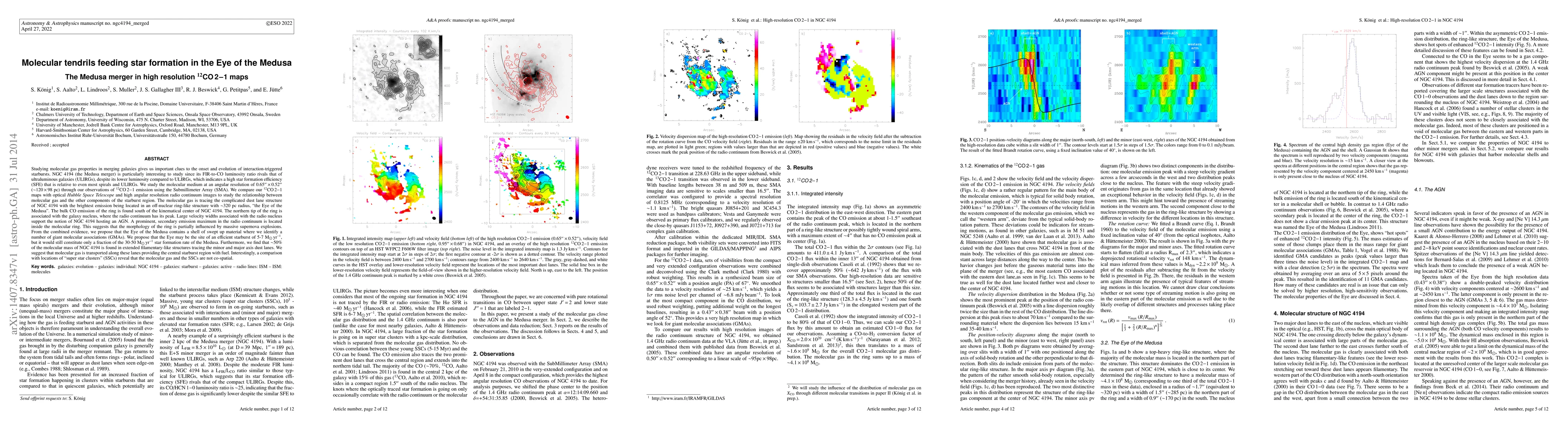 Studying molecular gas properties in merging galaxies gives us important clues to the onset and evolution of interaction-triggered starbursts. NGC4194 is particularly interesting to study since its FIR-to-CO luminosity ratio rivals that of ULIRGs,despite its lower luminosity compared to ULIRGs, which indicates a high star formation efficiency that is relative to even most spirals and ULIRGs.We study the molecular medium at an angular resolution of 0.65"x .52" through our observations of CO2-1 emission using the SMA. We compare our CO2-1 maps with optical HST and high angular resolution radio continuum images to study the relationship between molecular gas and other components of the starburst region. The molecular gas is tracing the complicated dust lane structure of NGC4194 with the brightest emission being located in an off-nuclear ring-like structure with ~320pc radius, the Eye of the Medusa. The bulk CO emission of the ring is found south of the kinematical center of NGC4194. The northern tip of the ring is associated with the galaxy nucleus, where the radio continuum has its peak. A prominent, secondary emission maximum in the radio continuum is located inside the molecular ring. This suggests that the morphology of the ring is partially influenced by massive supernova explosions. From the combined evidence, we propose that the Eye of the Medusa contains a shell of swept up material where we identify a number of giant molecular associations. We propose that the Eye may be the site of an efficient starburst of 5-7M_sun/yr, but it would still constitute only a fraction of the 30-50M_sun/yr SFR of NGC4194. Furthermore, we find that ~50% of the molecular mass of NGC4194 is found in extended filamentary-like structures tracing the minor and major axis dust lanes. We suggest that molecular gas is transported along these lanes providing the central starburst region with fuel.