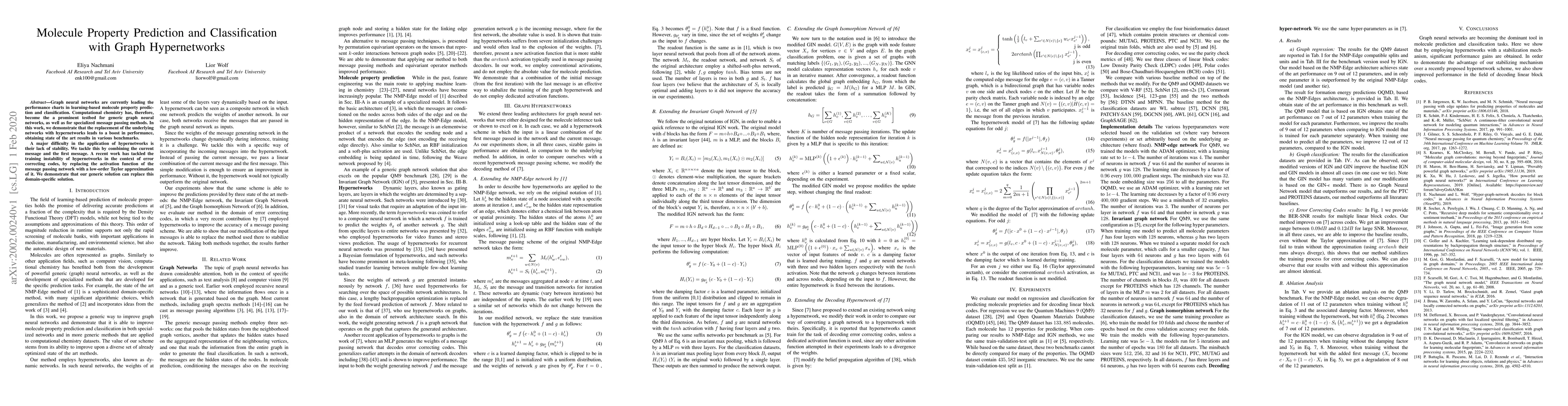 Graph neural networks are currently leading the performance charts in learning-based molecule property prediction and classification. Computational chemistry has, therefore, become the a prominent testbed for generic graph neural networks, as well as for specialized message passing methods. In this work, we demonstrate that the replacement of the underlying networks with hypernetworks leads to a boost in performance, obtaining state of the art results in various benchmarks. A major difficulty in the application of hypernetworks is their lack of stability. We tackle this by combining the current message and the first message. A recent work has tackled the training instability of hypernetworks in the context of error correcting codes, by replacing the activation function of the message passing network with a low-order Taylor approximation of it. We demonstrate that our generic solution can replace this domain-specific solution.