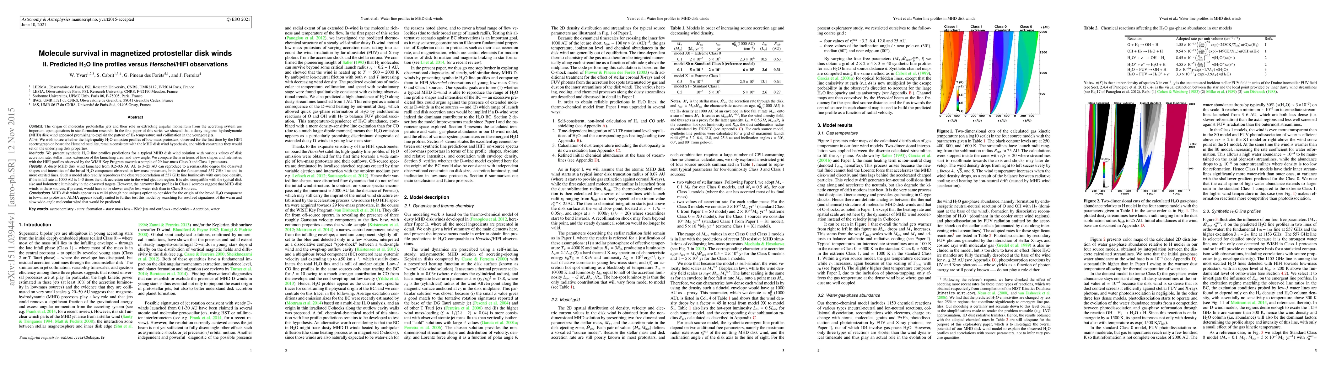 We investigate whether the broad wings of H2O emission identified with Herschel towards low-mass Class 0 and Class 1 protostars may be consistent with an origin in a dusty MHD disk wind, and the constraints it would set on the underlying disk properties. We present synthetic H2O line profiles predictions for a typical MHD disk wind solution with various values of disk accretion rate, stellar mass, extension of the launching area, and view angle. We compare them in terms of line shapes and intensities with the HIFI profiles observed by the WISH Key Program. We find that a dusty MHD disk wind launched from 0.2--0.6 AU AU to 3--25 AU can reproduce to a remarkable degree the observed shapes and intensities of the broad H2O component, both in the fundamental 557 GHz line and in more excited lines. Such a model also readily reproduces the observed correlation of 557 GHz line luminosity with envelope density, if the infall rate at 1000 AU is 1--3 times the disk accretion rate in the wind ejection region. It is also compatible with the typical disk size and bolometric luminosity in the observed targets. However, the narrower line profiles in Class 1 sources suggest that MHD disk winds in these sources, if present, would have to be slower and/or less water rich than in Class 0 sources. In conclusion, MHD disk winds appear as a valid (though not unique) option to consider for the origin of the broad H2O component in low-mass protostars. ALMA appears ideally suited to further test this model by searching for resolved signatures of the warm and slow wide-angle molecular wind that would be predicted.
