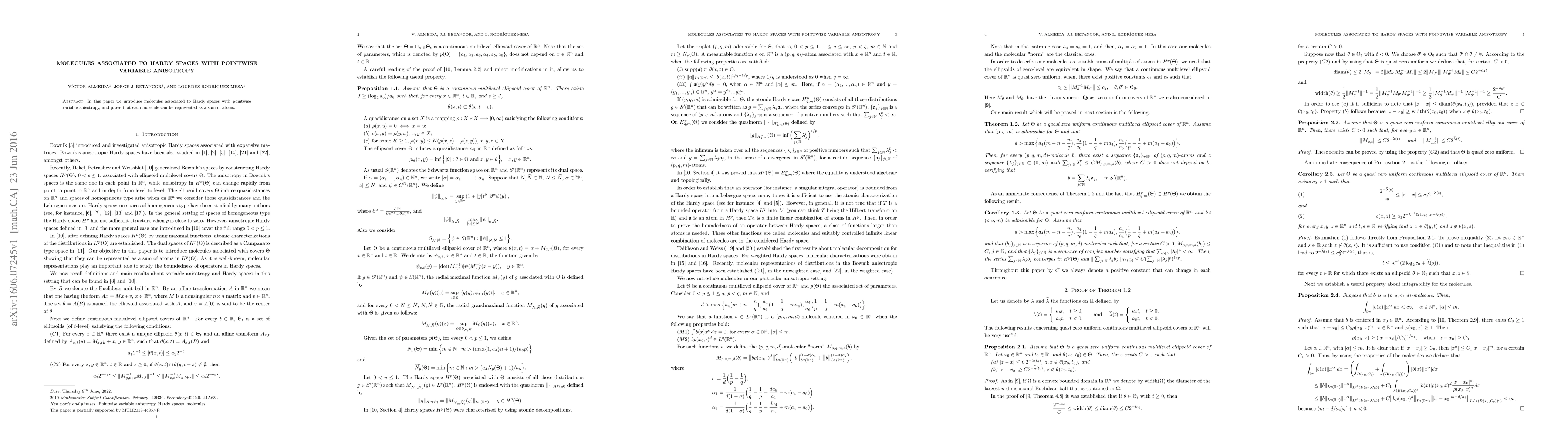 In this paper we introduce molecules associated to Hardy spaces with pointwise variable anisotropy, and prove that each molecule can be represented as a sum of atoms.