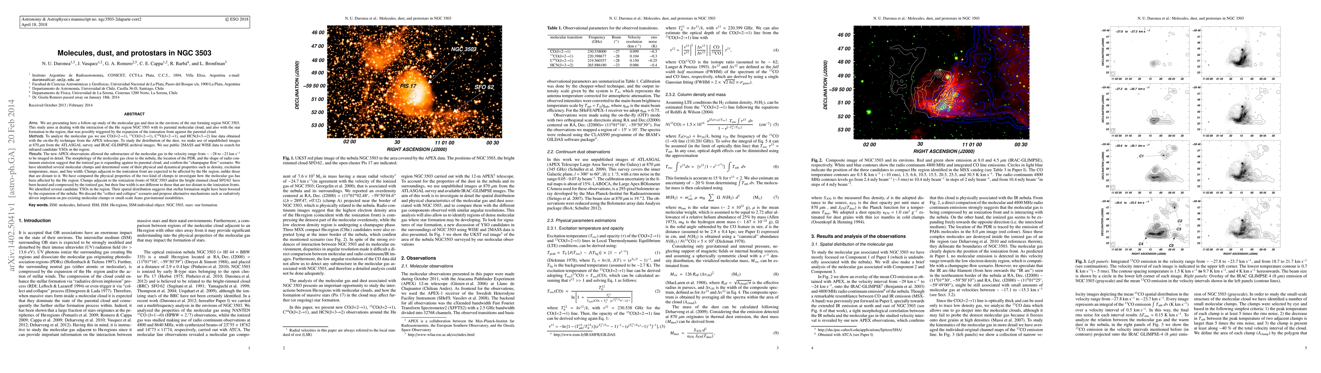 We are presenting here a follow-up study of the molecular gas and dust in the environs of the star forming region NGC 3503. This study aims at dealing with the interaction of NGC 3503 with its parental molecular cloud, and also with the star formation in the region. To analyze the molecular gas we use CO(2-1), 13CO(2-1), C18O(2-1), and HCN(3-2) line data obtained with the APEX telescope. To study the distribution of the dust, we make use of images at 870 microns from the ATLASGAL survey and IRAC-GLIMPSE archival images. We use public 2MASS and WISE data to search for candidate YSOs in the region. The new APEX observations allowed the substructure of the molecular gas in the velocity range from -28 to -23 km/s to be imaged in detail. The morphology of the molecular gas close to the nebula, the location of the PDR, and the shape of radio continuum emission suggest that the ionized gas is expanding against its parental cloud, and confirm the "champagne flow" scenario. We have identified several molecular clumps and determined some of their physical and dynamical properties. We have compared the physical properties of the clumps to investigate how the molecular gas has been affected by the HII region. Clumps adjacent to the ionization fronts of NGC 3503 and/or the bright rimmed cloud SFO62 have been heated and compressed by the ionized gas, but their line width is not different to those that are too distant to the ionization fronts. We identified several candidate YSOs in the region. Their spatial distribution suggests that stellar formation might have been boosted by the expansion of the nebula. We discard the "collect and collapse" scenario and propose alternative mechanisms such as radiatively driven implosion on pre-existing molecular clumps or small-scale Jeans gravitational instabilities.