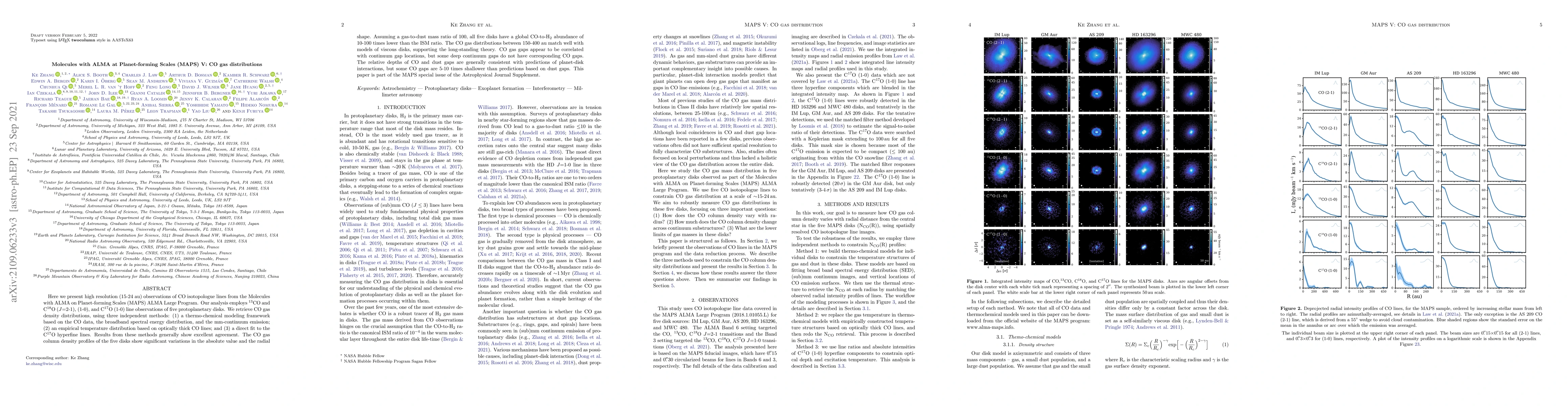 Here we present high resolution (15-24 au) observations of CO isotopologue lines from the Molecules with ALMA on Planet-forming Scales (MAPS) ALMA Large Program. Our analysis employs $^{13}$CO and C$^{18}$O ($J$=2-1), (1-0), and C$^{17}$O (1-0) line observations of five protoplanetary disks. We retrieve CO gas density distributions, using three independent methods: (1) a thermo-chemical modeling framework based on the CO data, the broadband spectral energy distribution, and the mm-continuum emission; (2) an empirical temperature distribution based on optically thick CO lines; and (3) a direct fit to the C$^{17}$O hyperfine lines. Results from these methods generally show excellent agreement. The CO gas column density profiles of the five disks show significant variations in the absolute value and the radial shape. Assuming a gas-to-dust mass ratio of 100, all five disks have a global CO-to-H$_2$ abundance of 10-100 times lower than the ISM ratio. The CO gas distributions between 150-400 au match well with models of viscous disks, supporting the long-standing theory. CO gas gaps appear to be correlated with continuum gap locations, but some deep continuum gaps do not have corresponding CO gaps. The relative depths of CO and dust gaps are generally consistent with predictions of planet-disk interactions, but some CO gaps are 5-10 times shallower than predictions based on dust gaps. This paper is part of the MAPS special issue of the Astrophysical Journal Supplement.