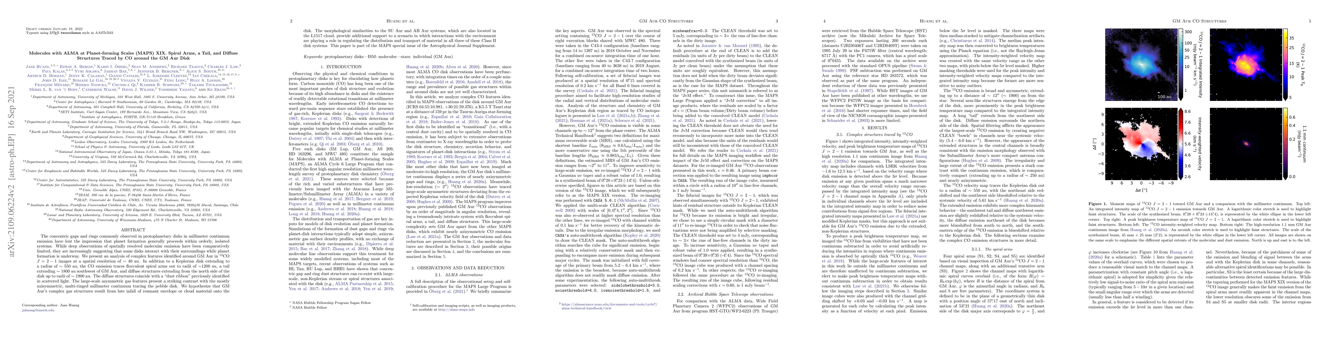 This paper analyzes complex gas structures in the GM Aur protoplanetary disk using ALMA observations, revealing spiral arms, a tail, and diffuse structures extending far beyond the disk's central region. The findings suggest that interactions with the surrounding environment may influence material distribution and transport during planet formation, contrasting with the more orderly millimeter continuum emission.