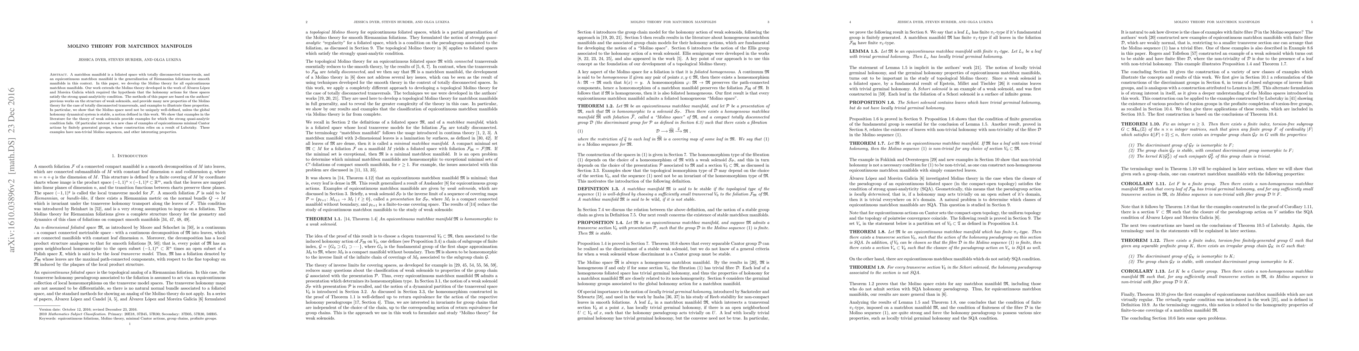 A matchbox manifold is a foliated space with totally disconnected transversals, and an equicontinuous matchbox manifold is the generalization of Riemannian foliations for smooth manifolds in this context. In this paper, we develop the Molino theory for all equicontinuous matchbox manifolds. Our work extends the Molino theory developed in the work of \'Alvarez L\'opez and Moreira Galicia which required the hypothesis that the holonomy actions for these spaces satisfy the strong quasi-analyticity condition. The methods of this paper are based on the authors' previous works on the structure of weak solenoids, and provide many new properties of the Molino theory for the case of totally disconnected transversals, and examples to illustrate these properties. In particular, we show that the Molino space need not be uniquely well-defined, unless the global holonomy dynamical system is tame, a notion defined in this work. We show that examples in the literature for the theory of weak solenoids provide examples for which the strong quasi-analytic condition fails. Of particular interest is a new class of examples of equicontinuous minimal Cantor actions by finitely generated groups, whose construction relies on a result of Lubotzky. These examples have non-trivial Molino sequences, and other interesting properties.