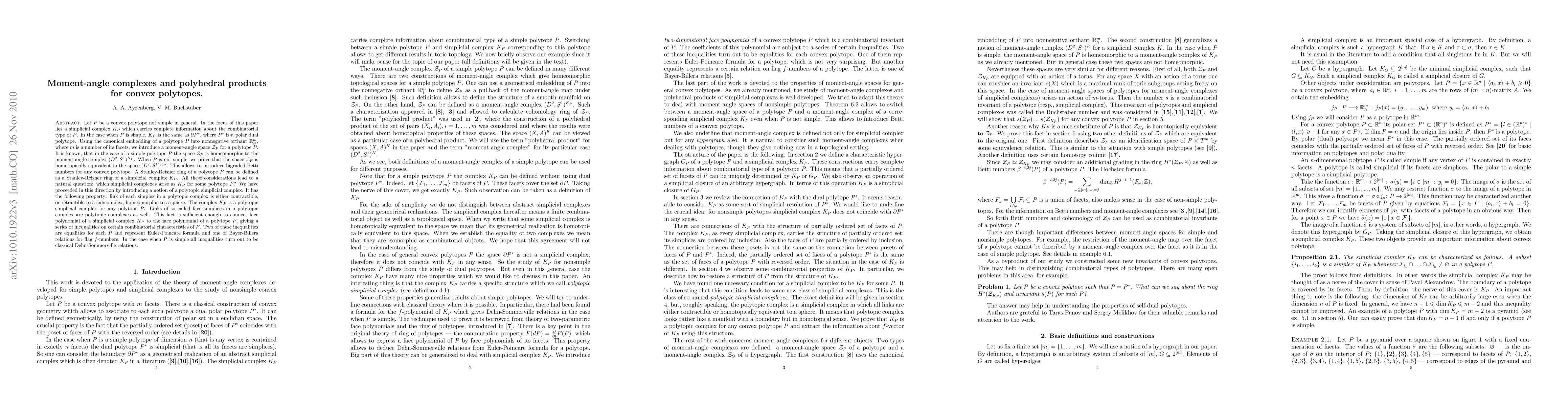 The paper introduces a method to analyze convex polytopes using moment-angle complexes and polyhedral products, allowing for the calculation of bigraded Betti numbers and connections between combinatorial characteristics.