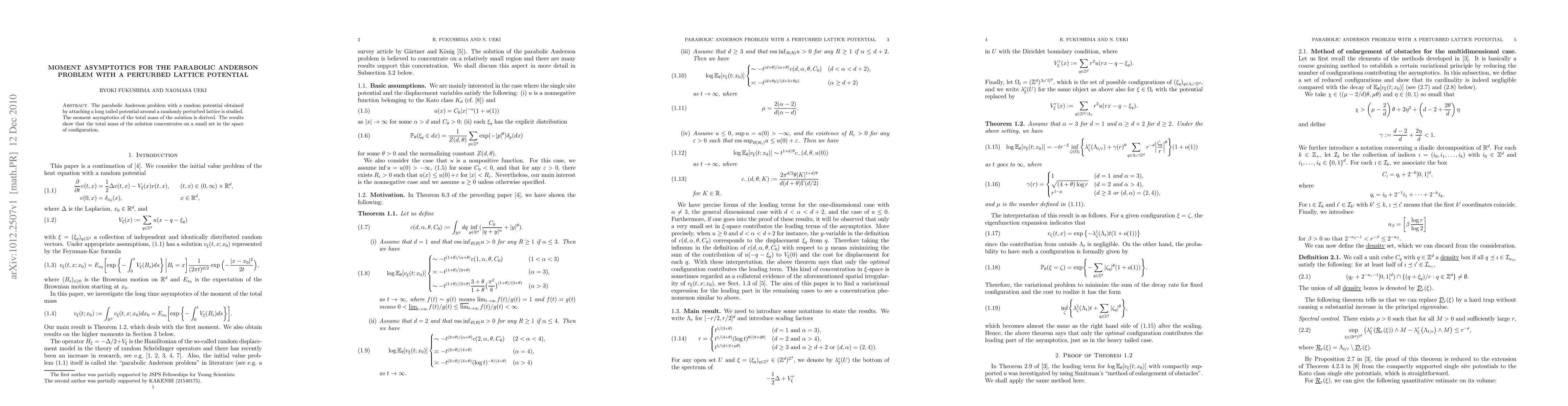 Summary: This paper investigates the parabolic Anderson problem with a perturbed lattice potential, deriving the moment asymptotics of the solution's total mass, which shows concentration on a small set in configuration space.