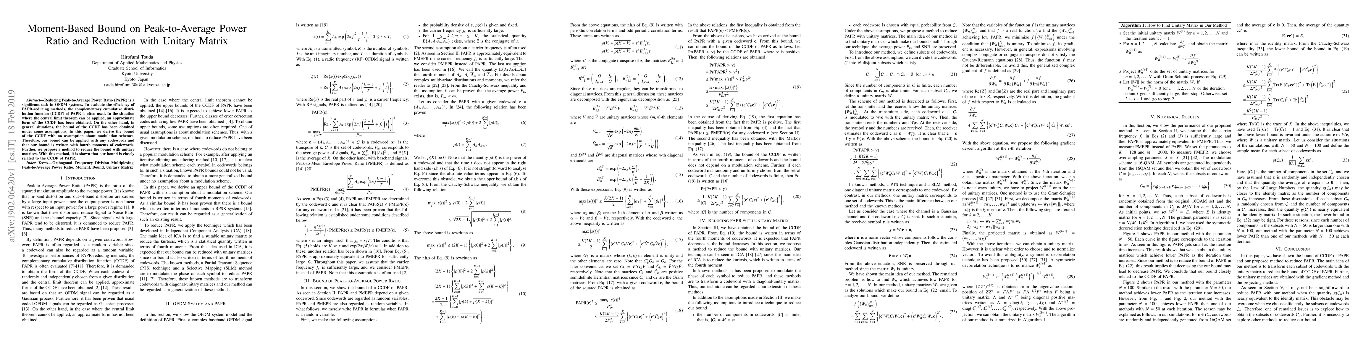 Reducing Peak-to-Average Power Ratio (PAPR) is a significant task in OFDM systems. To evaluate the efficiency of PAPR-reducing methods, the complementary cumulative distribution function (CCDF) of PAPR is often used. In the situation where the central limit theorem can be applied, an approximate form of the CCDF has been obtained. On the other hand, in general situations, the bound of the CCDF has been obtained under some assumptions. In this paper, we derive the bound of the CCDF with no assumption about modulation schemes. Therefore, our bound can be applied with any codewords and that our bound is written with fourth moments of codewords. Further, we propose a method to reduce the bound with unitary matrices. With this method, it is shown that our bound is closely related to the CCDF of PAPR.