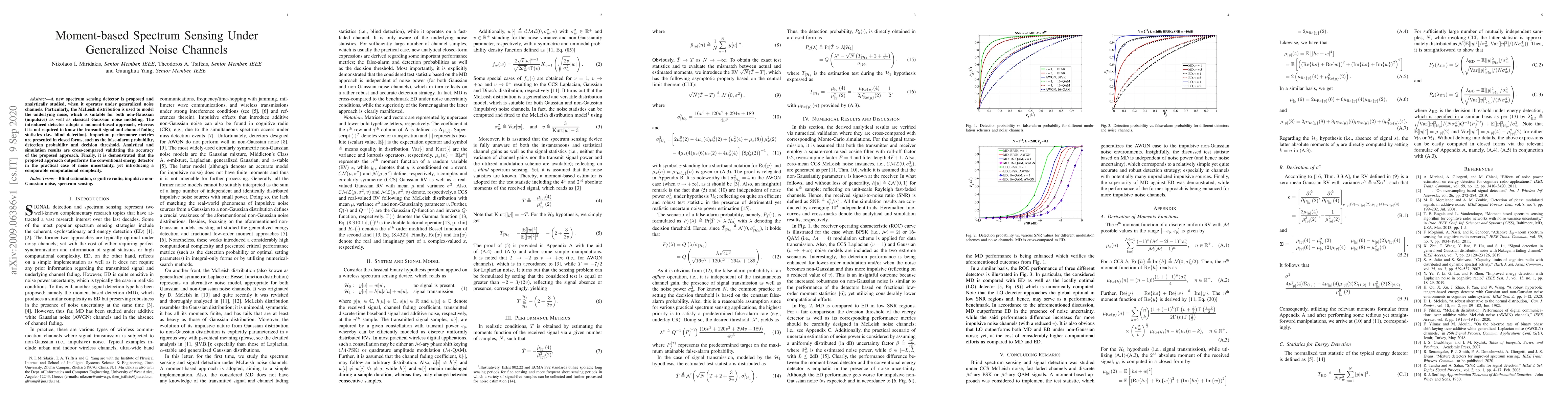 A new spectrum sensing detector is proposed and analytically studied, when it operates under generalized noise channels. Particularly, the McLeish distribution is used to model the underlying noise, which is suitable for both non-Gaussian (impulsive) as well as classical Gaussian noise modeling. The introduced detector adopts a moment-based approach, whereas it is not required to know the transmit signal and channel fading statistics (i.e., blind detection). Important performance metrics are presented in closed forms, such as the false-alarm probability, detection probability and decision threshold. Analytical and simulation results are cross-compared validating the accuracy of the proposed approach. Finally, it is demonstrated that the proposed approach outperforms the conventional energy detector in the practical case of noise uncertainty, yet introducing a comparable computational complexity.