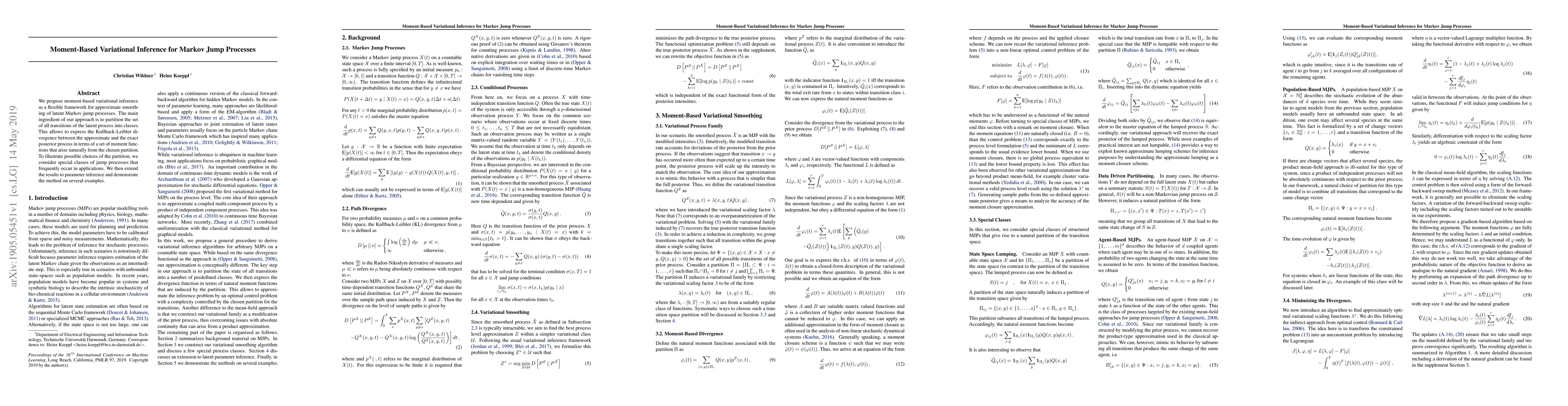This paper introduces moment-based variational inference for approximate smoothing of latent Markov jump processes, partitioning transitions into classes to express the Kullback-Leibler divergence via moment functions. The method is demonstrated on various jump process applications and extended for parameter inference.