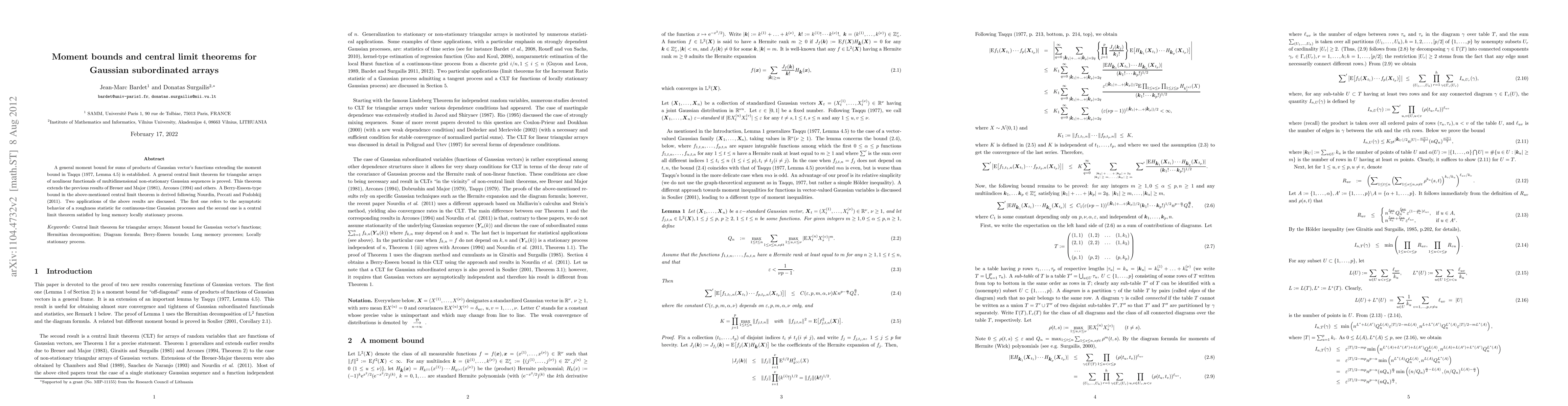 A general moment bound for sums of products of Gaussian vector's functions extending the moment bound in Taqqu (1977, Lemma 4.5) is established. A general central limit theorem for triangular arrays of nonlinear functionals of multidimensional non-stationary Gaussian sequences is proved. This theorem extends the previous results of Breuer and Major (1981), Arcones (1994) and others. A Berry-Esseen-type bound in the above-mentioned central limit theorem is derived following Nourdin, Peccati and Podolskij (2011). Two applications of the above results are discussed. The first one refers to the asymptotic behavior of a roughness statistic for continuous-time Gaussian processes and the second one is a central limit theorem satisfied by long memory locally stationary process.
