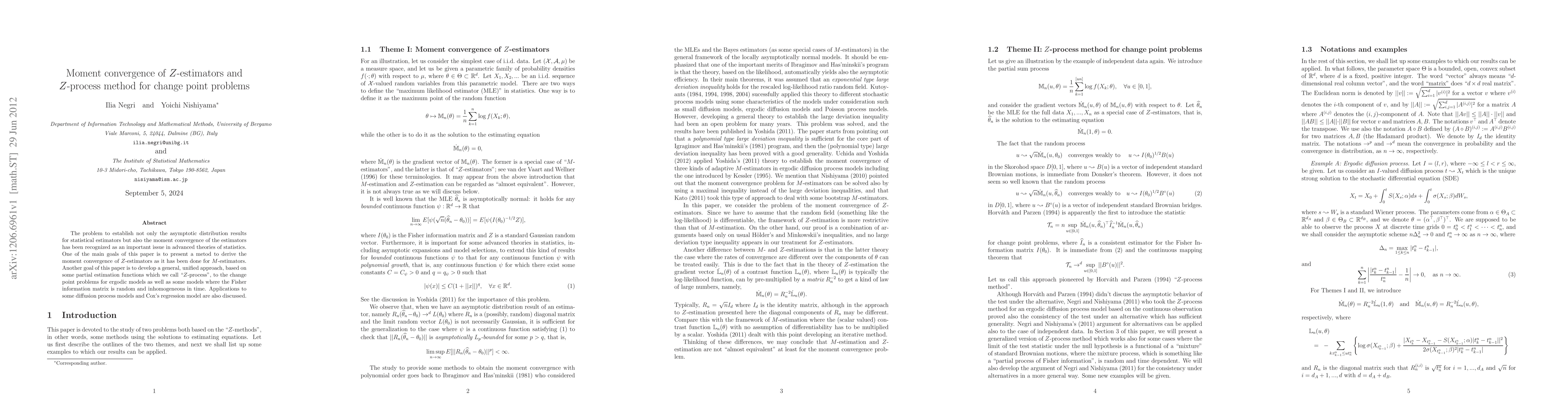 The problem to establish not only the asymptotic distribution results for statistical estimators but also the moment convergence of the estimators has been recognized as an important issue in advanced theories of statistics. One of the main goals of this paper is to present a metod to derive the moment convergence of $Z$-estimators as it has been done for $M$-estimators. Another goal of this paper is to develop a general, unified approach, based on some partial estimation functions which we call "$Z$-process", to the change point problems for ergodic models as well as some models where the Fisher information matrix is random and inhomogeneous in time. Applications to some diffusion process models and Cox's regression model are also discussed.