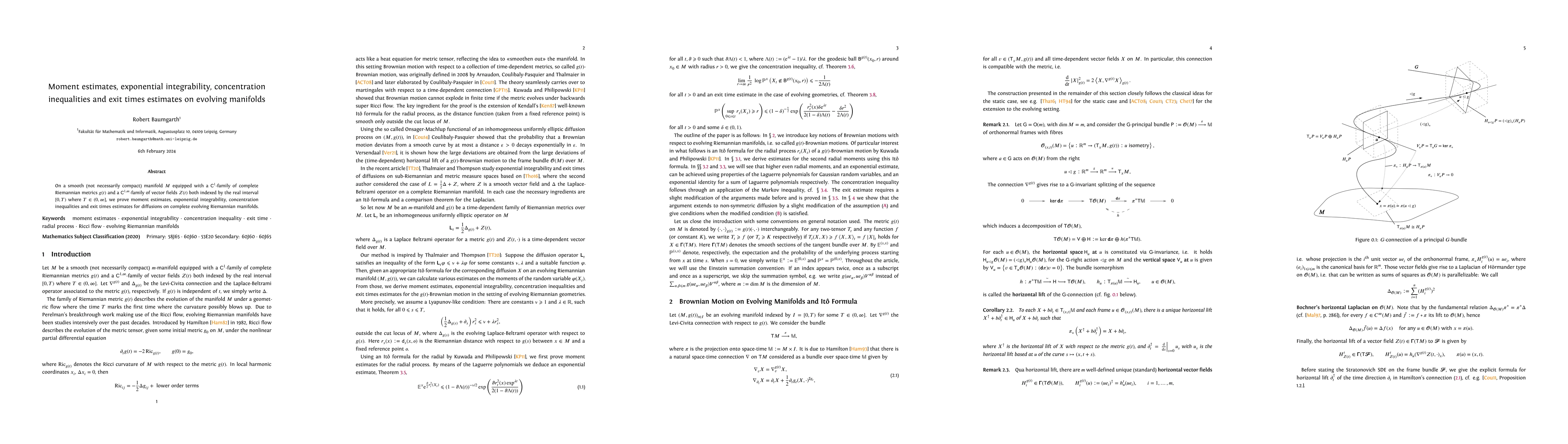 This research proves moment estimates, exponential integrability, concentration inequalities, and exit times estimates for diffusion processes on evolving Riemannian manifolds equipped with time-dependent metrics and vector fields. These results provide insights into the probabilistic behavior of such processes.