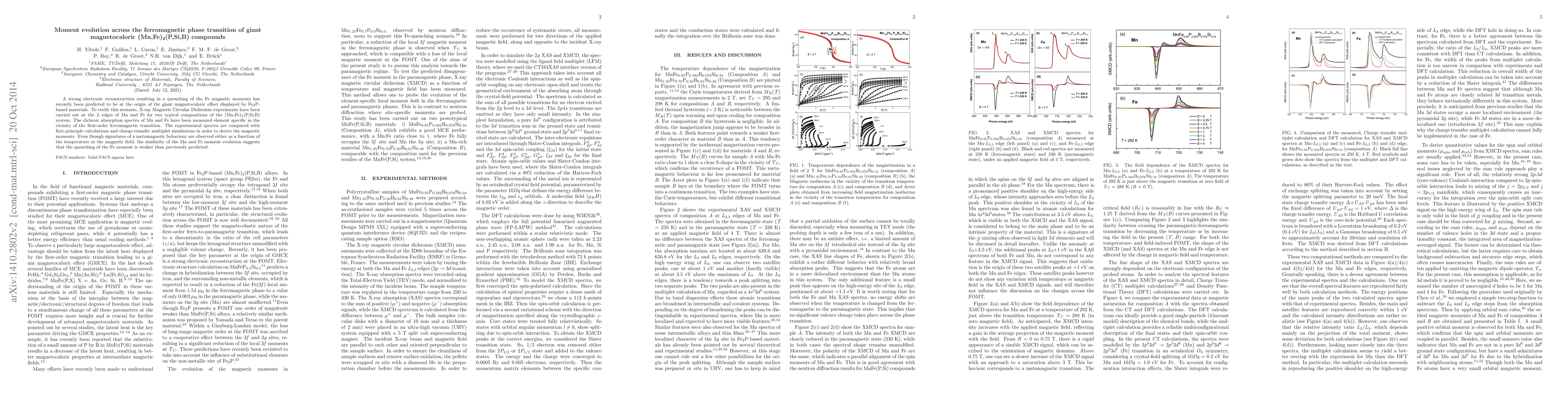 This study investigates the magnetic moment evolution in (Mn,Fe)2(P,Si,B) compounds near their ferromagnetic phase transition using X-ray Magnetic Circular Dichroism. The results suggest that the predicted quenching of Fe magnetic moments is weaker than anticipated, despite observed metamagnetic behavior.
