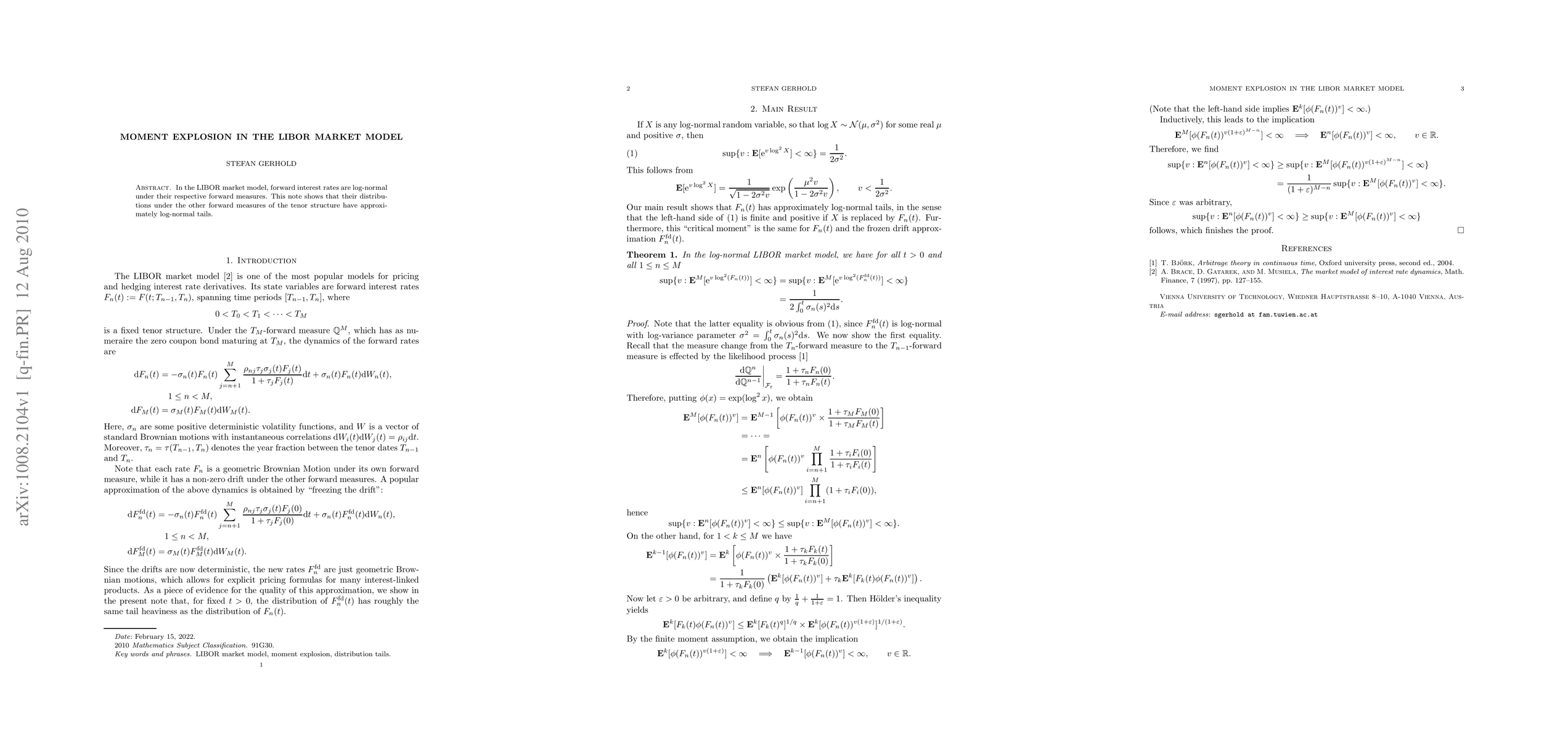 Summary: The paper demonstrates that in the LIBOR market model, forward interest rates exhibit log-normal distributions under their respective forward measures and maintain approximately log-normal tails under the other forward measures of the tenor structure. This insight aids in better understanding the model's distributional properties.