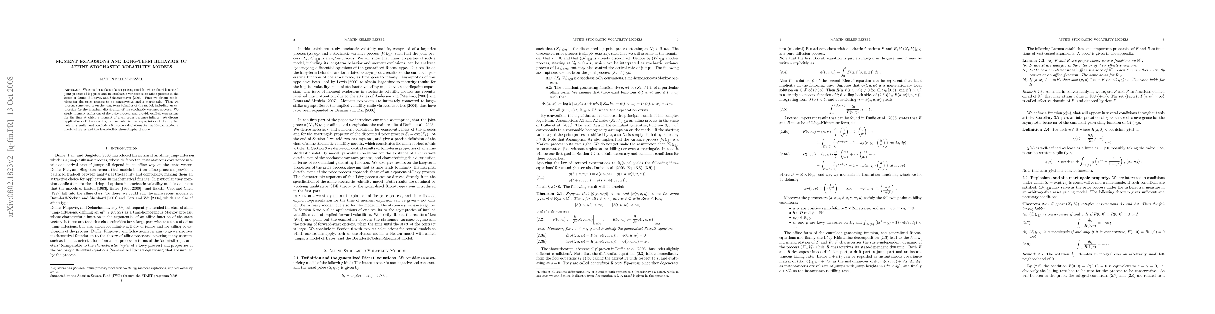 This paper investigates affine stochastic volatility models, deriving conditions for the price process to be conservative and a martingale. It also explores the long-term behavior, including the invariant distribution of the stochastic variance, and provides explicit expressions for the time at which moments of the price process explode, with applications to implied volatility smiles and calculations for specific models like Heston, Bates, and Barndorff-Nielsen-Shephard.