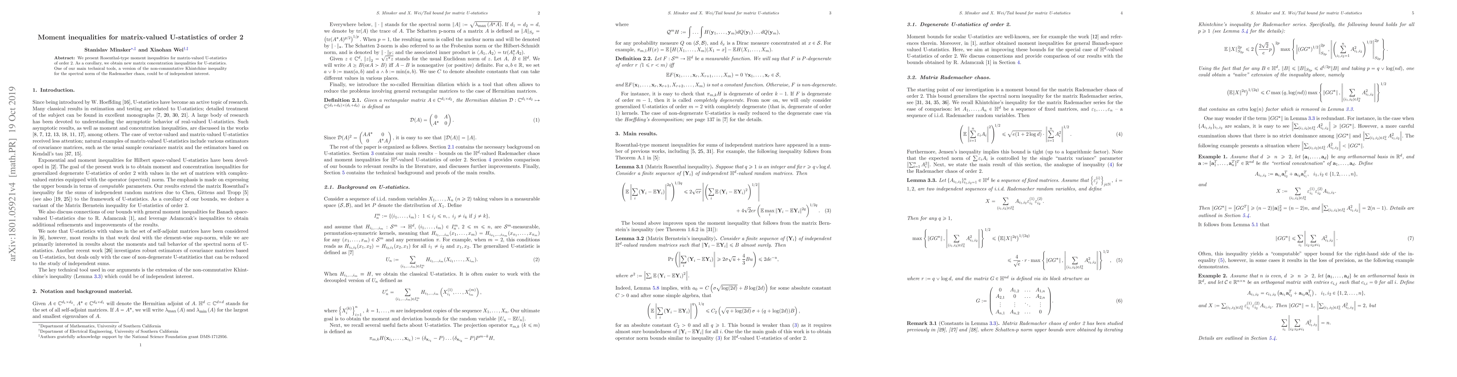 This paper establishes Rosenthal-type moment inequalities for matrix-valued U-statistics of order 2, leading to new matrix concentration inequalities. A significant technical contribution is a non-commutative Khintchine inequality for the spectral norm of Rademacher chaos.