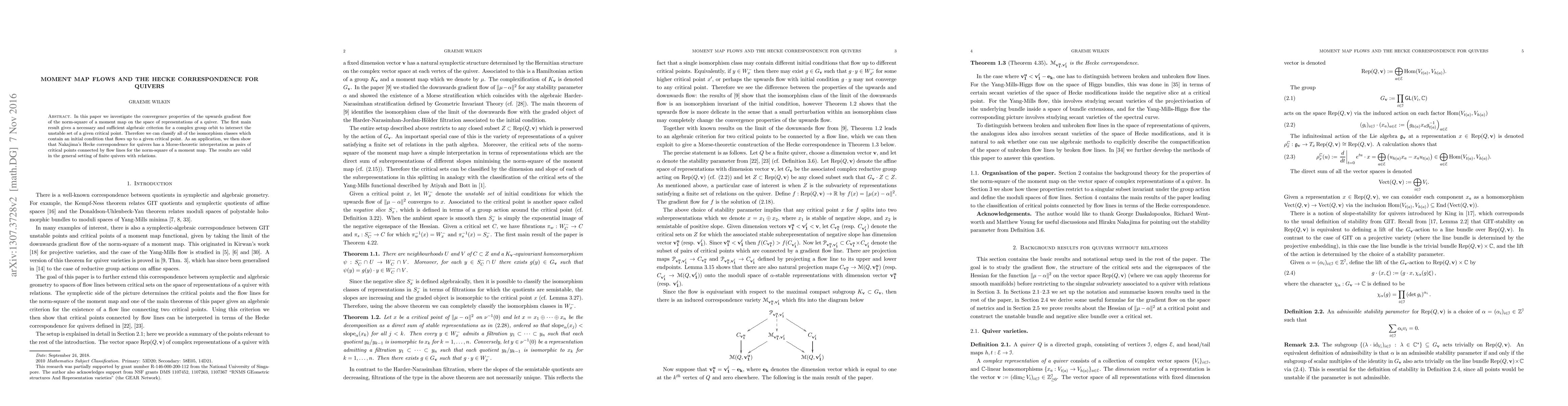 In this paper we investigate the convergence properties of the upwards gradient flow of the norm-square of a moment map on the space of representations of a quiver. The first main result gives a necessary and sufficient algebraic criterion for a complex group orbit to intersect the unstable set of a given critical point. Therefore we can classify all of the isomorphism classes which contain an initial condition that flows up to a given critical point. As an application, we then show that Nakajima's Hecke correspondence for quivers has a Morse-theoretic interpretation as pairs of critical points connected by flow lines for the norm-square of a moment map. The results are valid in the general setting of finite quivers with relations.