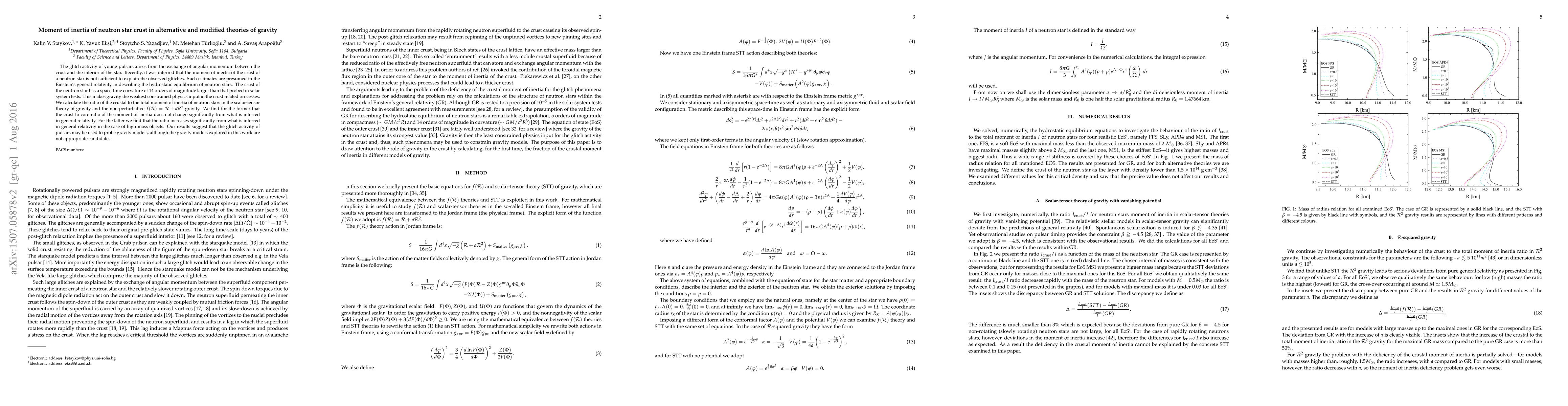 The glitch activity of young pulsars arises from the exchange of angular momentum between the crust and the interior of the star. Recently, it was inferred that the moment of inertia of the crust of a neutron star is not sufficient to explain the observed glitches. Such estimates are presumed in the Einstein's general relativity in describing the hydrostatic equilibrium of neutron stars. The crust of the neutron star has a space-time curvature of 14 orders of magnitude larger than that probed in solar system tests. This makes gravity the weakest constrained physics input in the crust related processes. We calculate the ratio of the crustal to the total moment of inertia of neutron stars in the scalar-tensor theory of gravity and the non-perturbative $f({\cal R})={\cal R}+ a {\cal R}^2$ gravity. We find for the former that the crust to core ratio of the moment of inertia does not change significantly from what is inferred in general relativity. For the latter we find that the ratio increases significantly from what is inferred in general relativity in the case of high mass objects. Our results suggest that the glitch activity of pulsars may be used to probe gravity models, although the gravity models explored in this work are not appropriate candidates.
