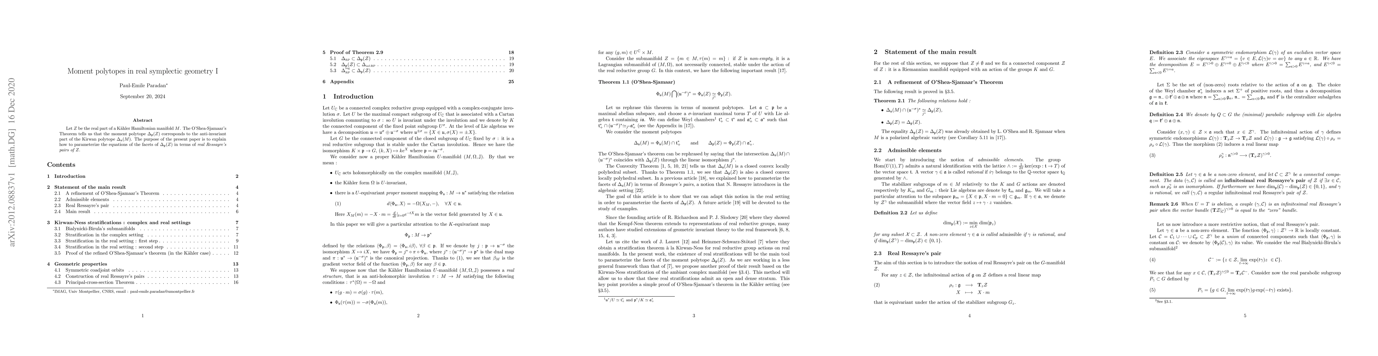 Let Z be the real part of a K{\"a}hler Hamiltonian manifold M. The O'Shea-Sjamaar's Theorem tells us that the moment polytope Delta(Z) corresponds to the anti-invariant part of the Kirwan polytope Delta(M). The purpose of the present paper is to explain how to parameterize the equations of the facets of Delta(Z) in terms of real Ressayre's pairs of Z.