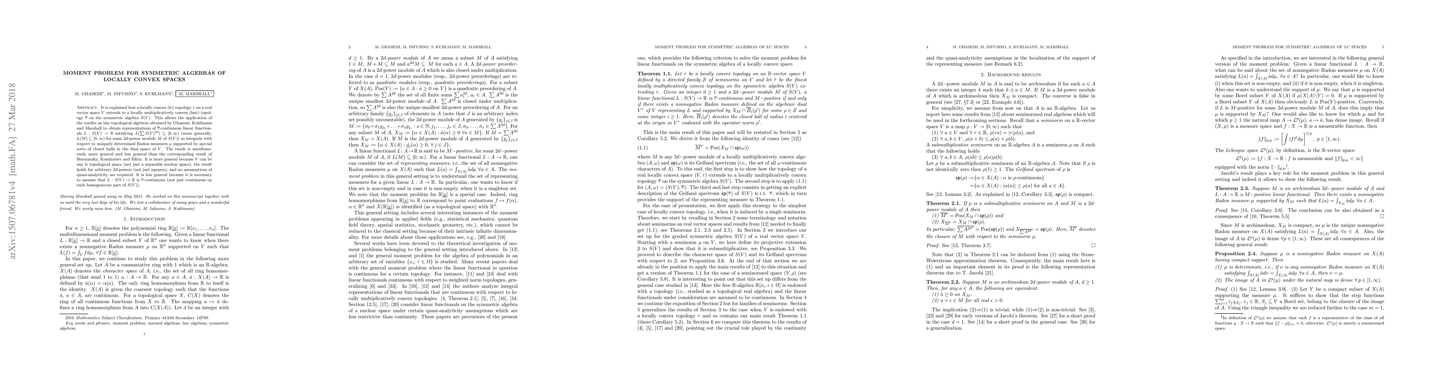 A paper introduces a method to represent continuous linear functionals on symmetric algebras of locally convex spaces as integrals with respect to Radon measures, extending previous results for quasi-analytic functions.