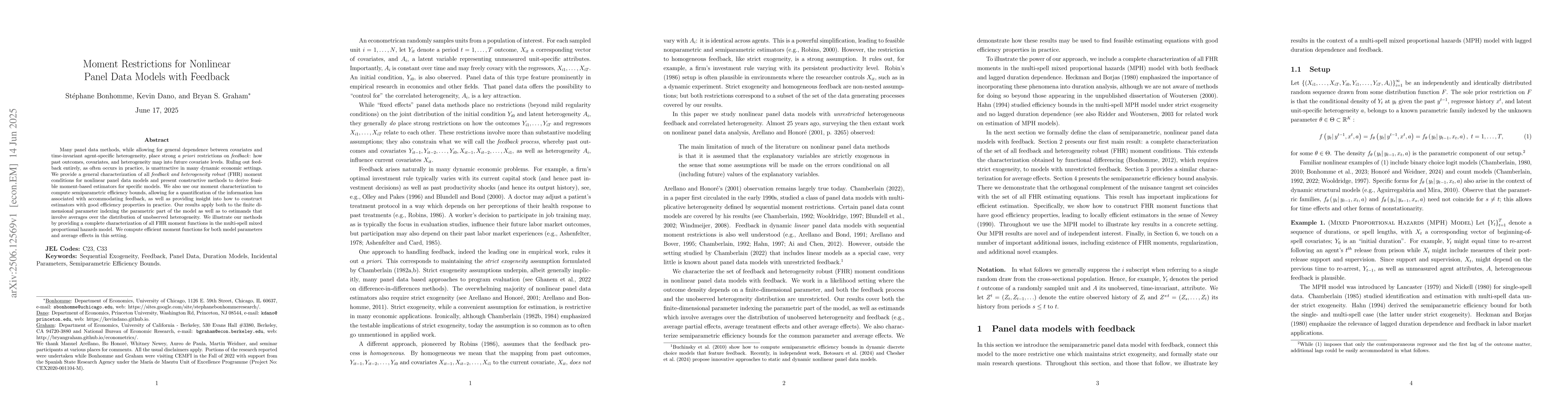 Many panel data methods, while allowing for general dependence between covariates and time-invariant agent-specific heterogeneity, place strong a priori restrictions on feedback: how past outcomes, covariates, and heterogeneity map into future covariate levels. Ruling out feedback entirely, as often occurs in practice, is unattractive in many dynamic economic settings. We provide a general characterization of all feedback and heterogeneity robust (FHR) moment conditions for nonlinear panel data models and present constructive methods to derive feasible moment-based estimators for specific models. We also use our moment characterization to compute semiparametric efficiency bounds, allowing for a quantification of the information loss associated with accommodating feedback, as well as providing insight into how to construct estimators with good efficiency properties in practice. Our results apply both to the finite dimensional parameter indexing the parametric part of the model as well as to estimands that involve averages over the distribution of unobserved heterogeneity. We illustrate our methods by providing a complete characterization of all FHR moment functions in the multi-spell mixed proportional hazards model. We compute efficient moment functions for both model parameters and average effects in this setting.