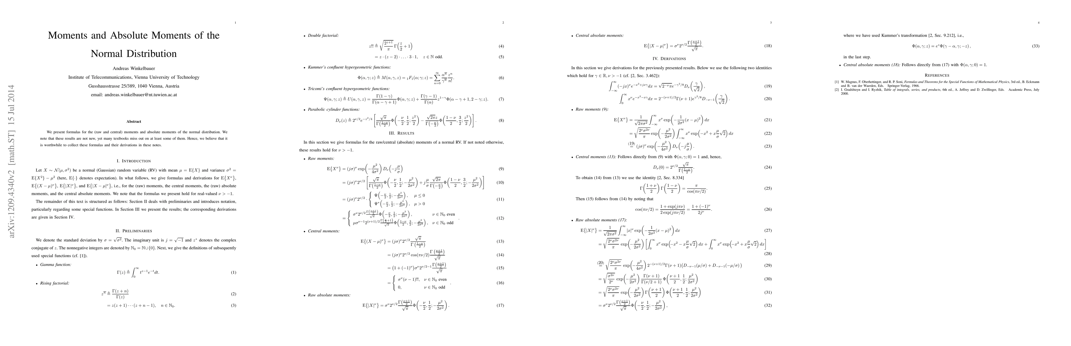 This paper compiles and derives formulas for the moments and absolute moments of the normal distribution, emphasizing that despite their familiarity, these results are often overlooked in textbooks. It aims to fill this gap by providing a comprehensive collection of these mathematical expressions.
