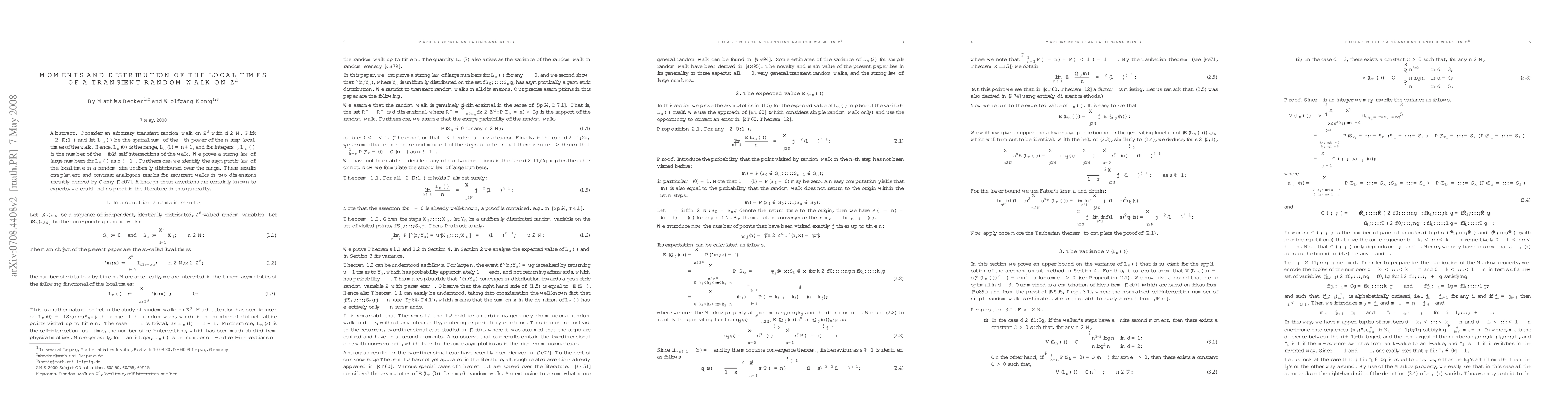 The paper uses probabilistic methods to analyze transient random walks on $\Z^d$, focusing on the local times and their moments. It provides a strong law of large numbers for $L_n(\alpha)$ as $n \to \infty$ and identifies the asymptotic law of local time in a random site.
