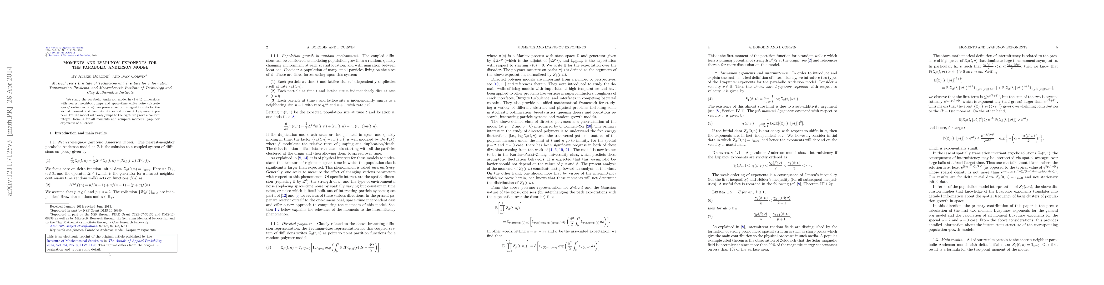 This paper investigates the parabolic Anderson model in $(1+1)$ dimensions with white noise, deriving contour integral formulas for moments and calculating Lyapunov exponents. Specifically, it provides a second moment formula and exponent for the general model and extends to all-order moment formulas and exponents for a variant with only rightward jumps.
