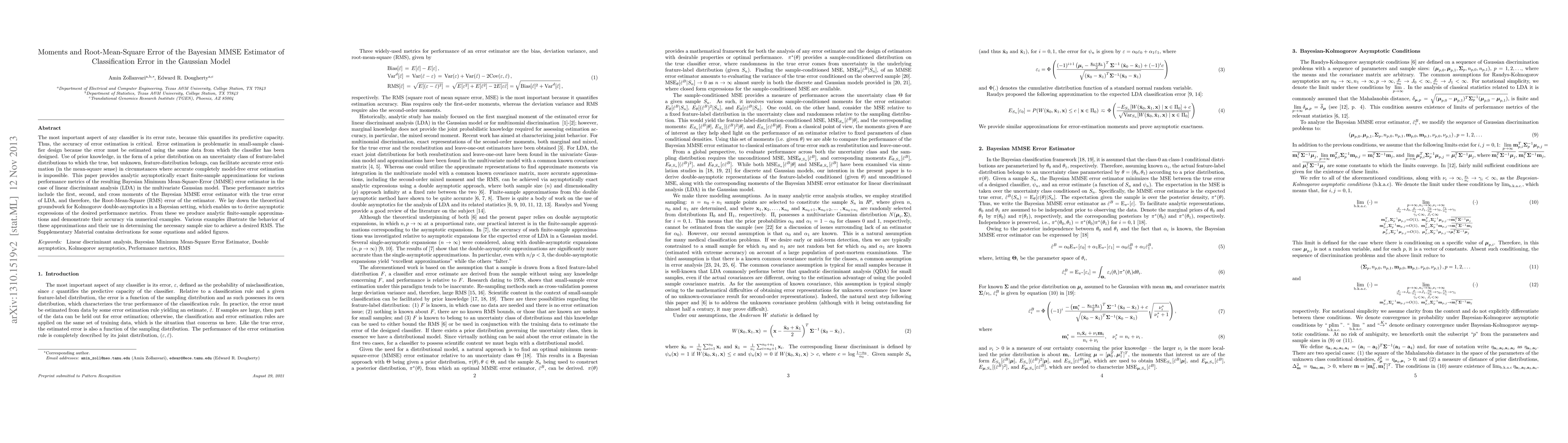 This paper develops analytic approximations for performance metrics of the Bayesian Minimum Mean-Square-Error (MMSE) error estimator in the Gaussian model, providing insights into the moments and Root-Mean-Square (RMS) error of the estimator. It lays the theoretical foundation for Kolmogorov double-asymptotics in a Bayesian context and demonstrates the accuracy of these approximations through numerical examples.