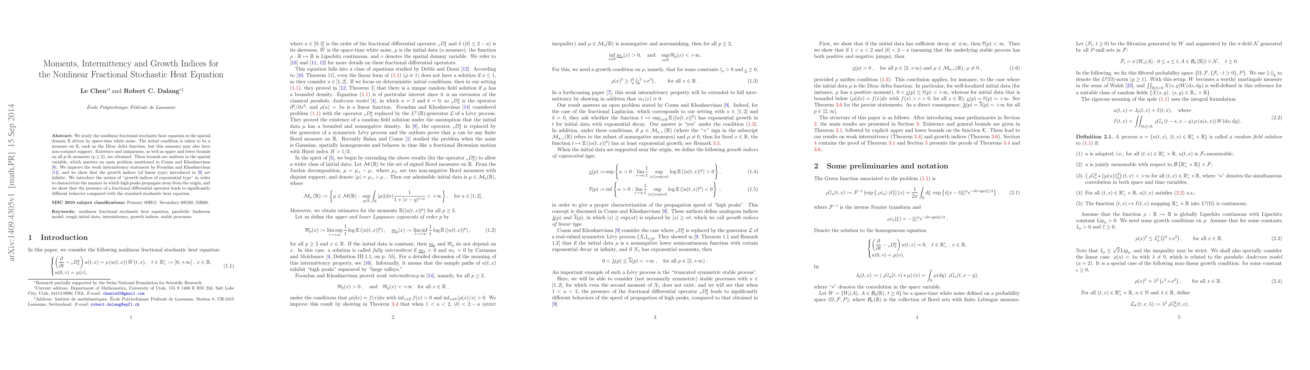 This paper investigates the nonlinear fractional stochastic heat equation driven by space-time white noise, establishing existence, uniqueness, and moment bounds. It improves intermittency results and introduces "growth indices of exponential type" to characterize peak propagation, revealing distinct behavior from the standard stochastic heat equation.