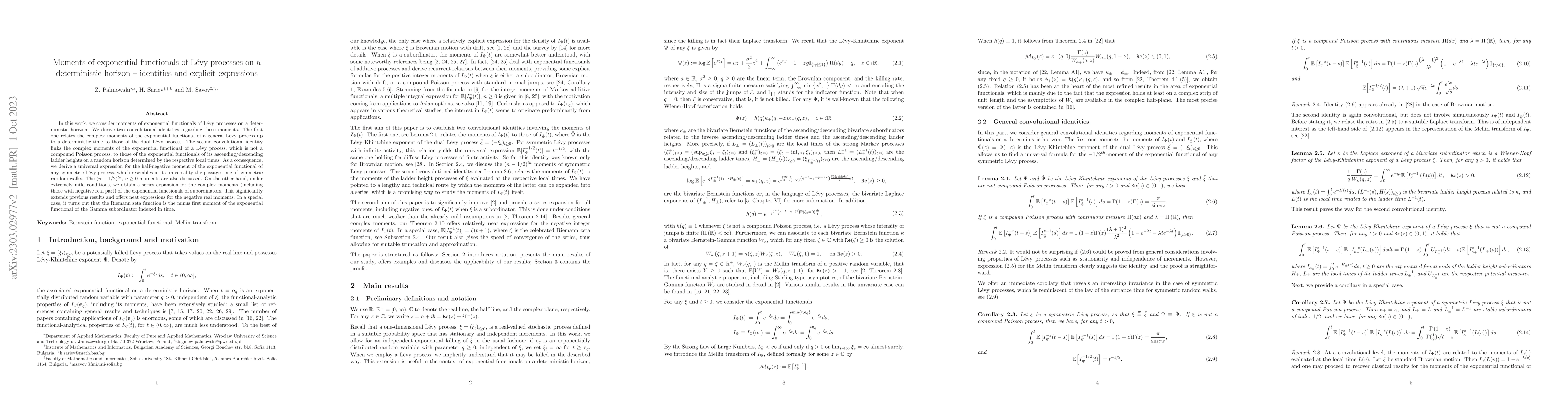 In this work, we consider moments of exponential functionals of L\'{e}vy processes on a deterministic horizon. We derive two convolutional identities regarding these moments. The first one relates the complex moments of the exponential functional of a general L\'{e}vy process up to a deterministic time to those of the dual L\'{e}vy process. The second convolutional identity links the complex moments of the exponential functional of a L\'{e}vy process, which is not a compound Poisson process, to those of the exponential functionals of its ascending/descending ladder heights on a random horizon determined by the respective local times. As a consequence, we derive a universal expression for the half-negative moment of the exponential functional of any symmetric L\'{e}vy process, which resembles in its universality the passage time of symmetric random walks. The $(n-1/2)^{th}$, $n\geq 0$ moments are also discussed. On the other hand, under extremely mild conditions, we obtain a series expansion for the complex moments (including those with negative real part) of the exponential functionals of subordinators. This significantly extends previous results and offers neat expressions for the negative real moments. In a special case, it turns out that the Riemann zeta function is the minus first moment of the exponential functional of the Gamma subordinator indexed in time.
