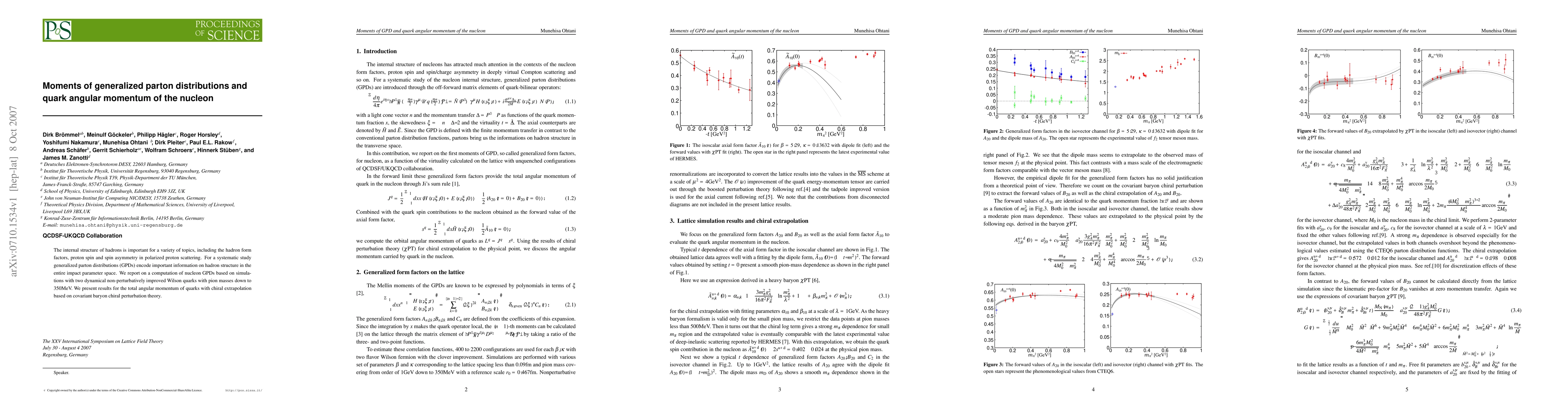 The internal structure of hadrons is important for a variety of topics, including the hadron form factors, proton spin and spin asymmetry in polarized proton scattering. For a systematic study generalized parton distributions (GPDs) encode important information on hadron structure in the entire impact parameter space. We report on a computation of nucleon GPDs based on simulations with two dynamical non-perturbatively improved Wilson quarks with pion masses down to 350MeV. We present results for the total angular momentum of quarks with chiral extrapolation based on covariant baryon chiral perturbation theory.