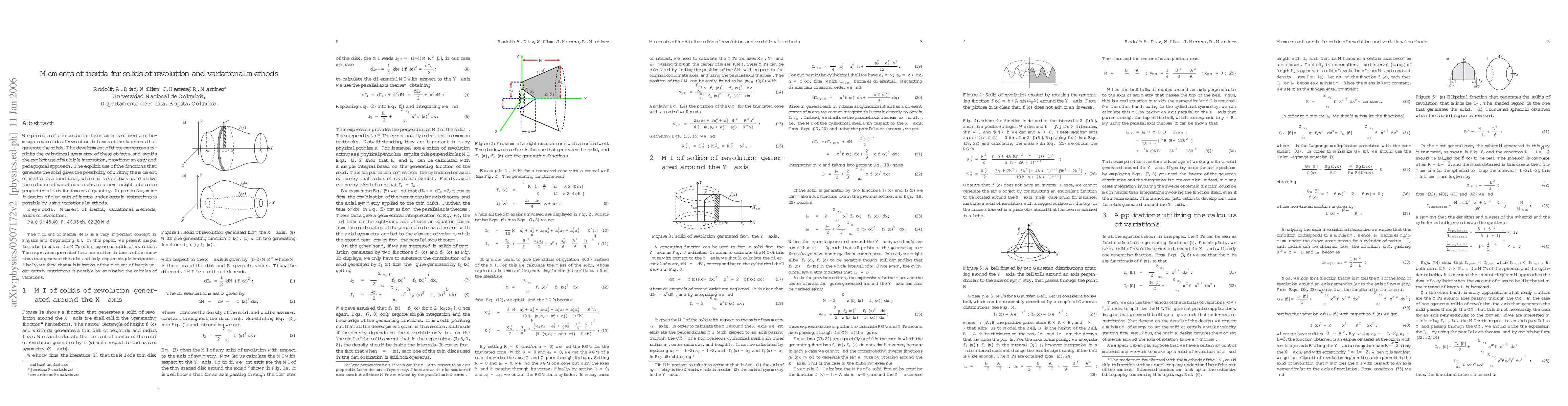 The paper provides simplified formulas for moments of inertia of solids of revolution using cylindrical symmetry and calculus of variations, offering a pedagogical approach to derive new insights into this fundamental quantity.