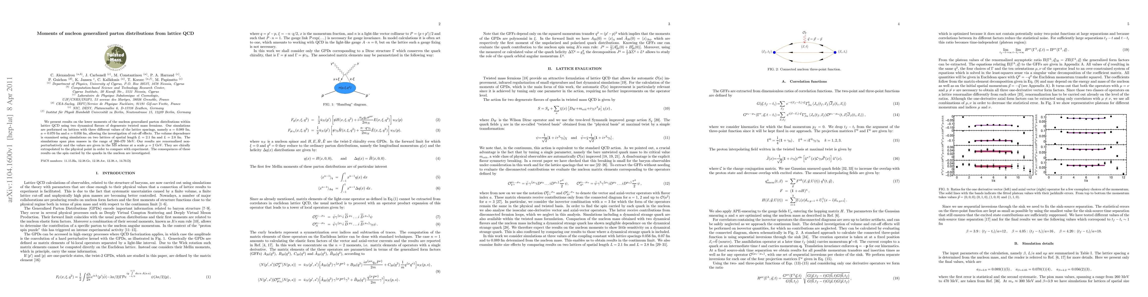 This paper reports on the lower moments of nucleon generalized parton distributions derived from lattice QCD simulations using twisted mass fermions. The study examines cut-off effects across different lattice spacings and volumes, and provides non-perturbatively renormalized results in the $\bar{\rm MS}$ scheme, which are extrapolated to physical pion masses to compare with experimental data, shedding light on the spin contribution of quarks in nucleons.