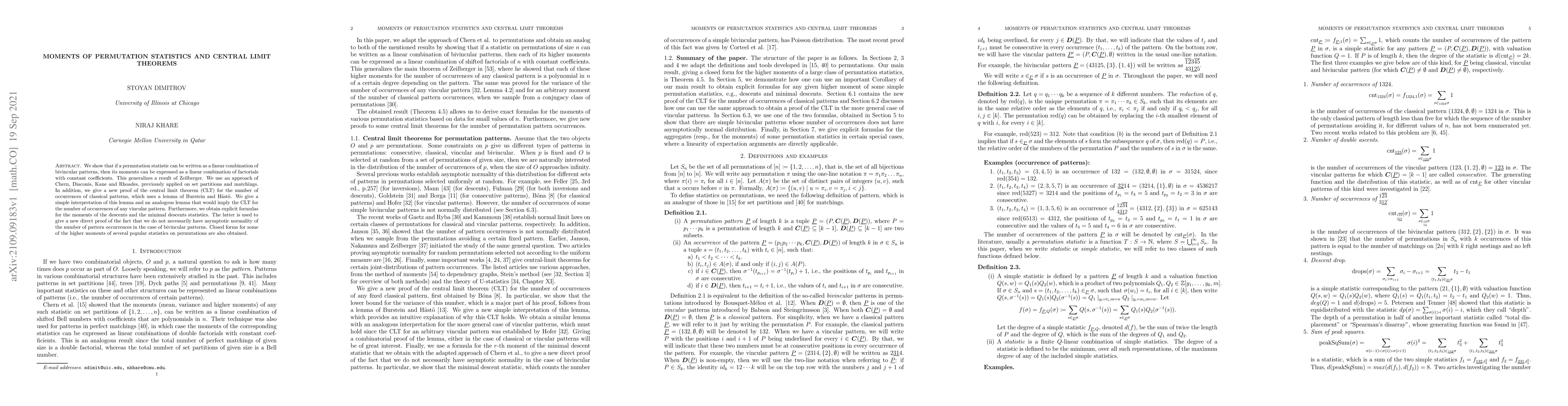 This paper generalizes Zeilberger's result on permutation statistics by expressing moments of permutation statistics as linear combinations of factorials. It also provides a new proof of the central limit theorem for classical pattern occurrences and derives explicit formulas for moments of descents and minimal descents statistics, demonstrating lack of asymptotic normality for bivincular patterns.
