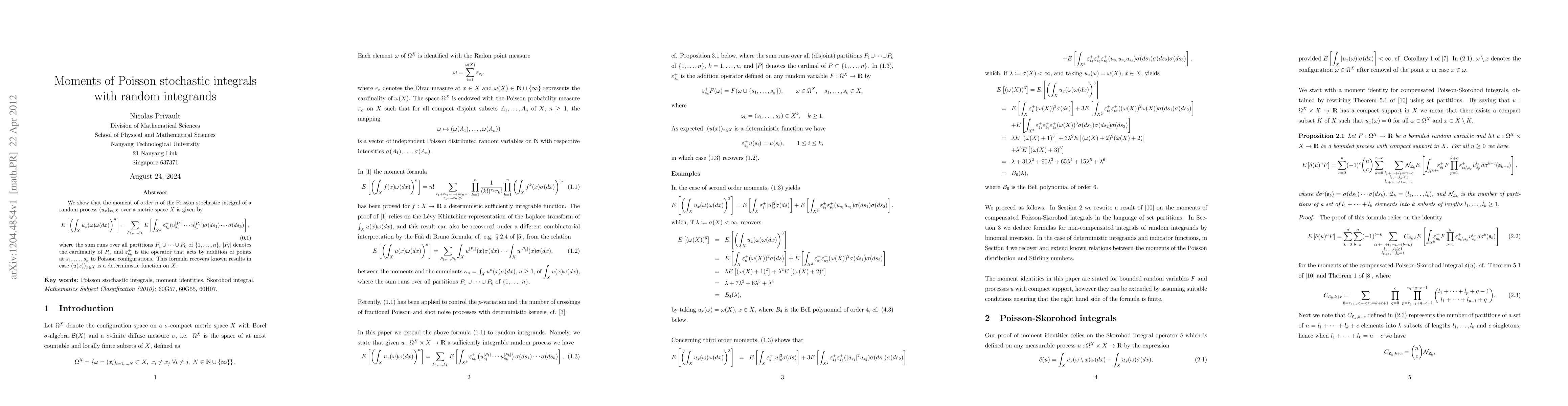 Researchers calculate a formula to compute the n-th moment of Poisson stochastic integrals with random integrands, recovering known results for deterministic functions.
