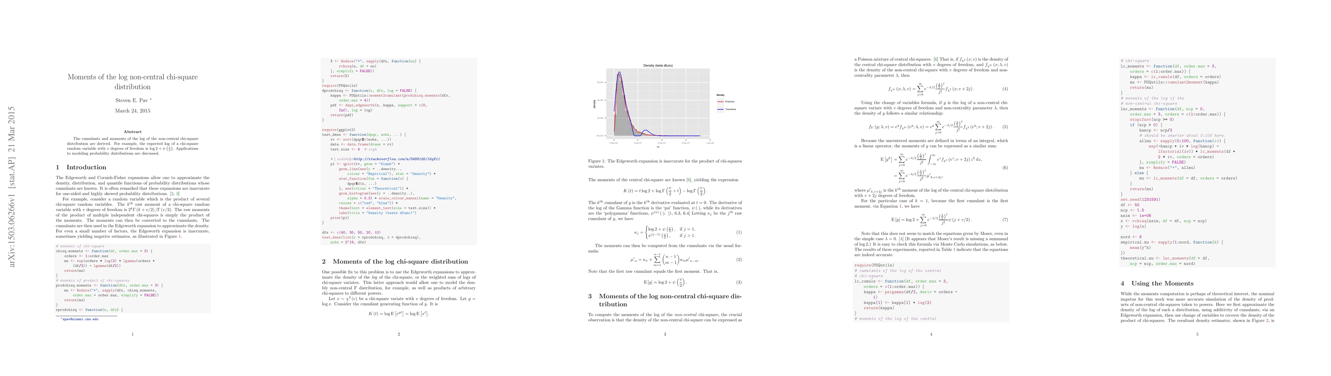 The paper derives cumulants and moments of the log non-central chi-square distribution, leading to new insights into modeling probability distributions.