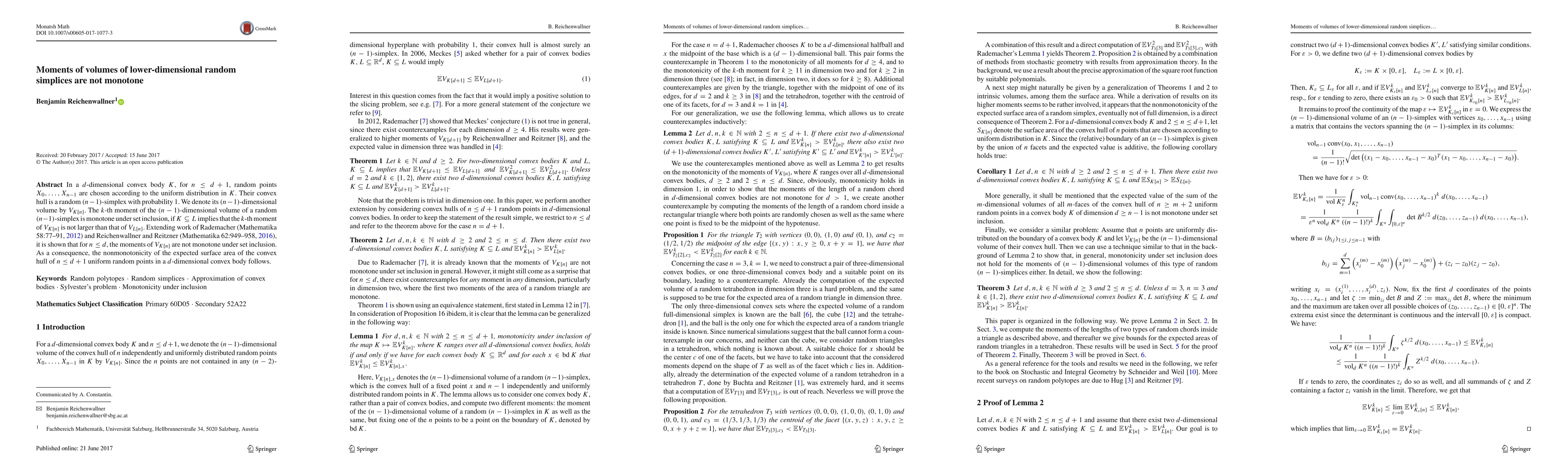 This paper demonstrates that the moments of the $(n-1)$-dimensional volume of random $(n-1)$-simplices formed within a $d$-dimensional convex body $K$ are not monotone under set inclusion, contradicting previous results for expected volume. This finding extends the work of Rademacher and Reichenwallner and Reitzner.