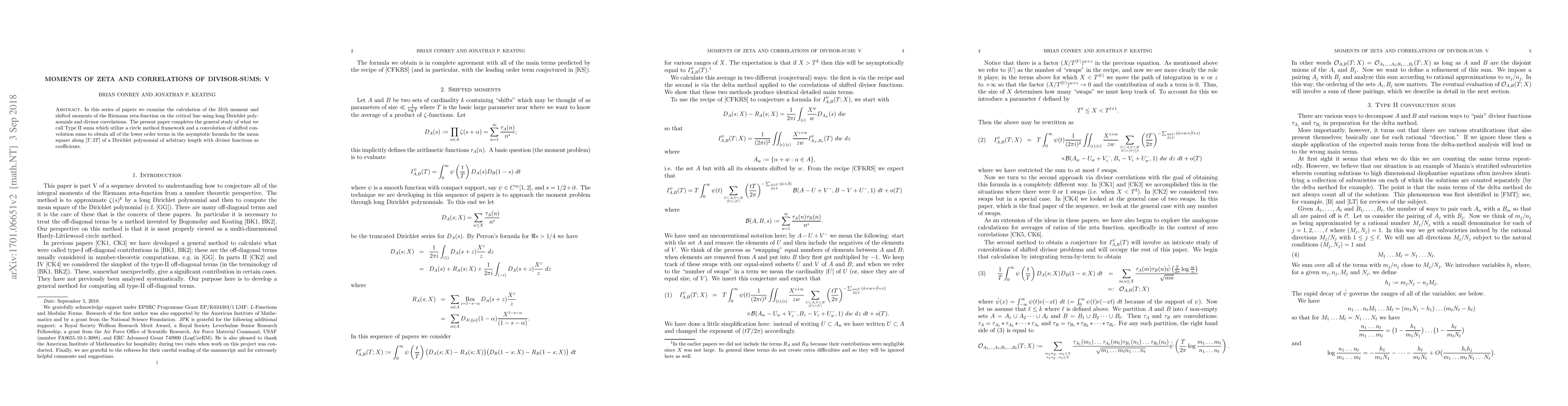 In this series of papers we examine the calculation of the $2k$th moment and shifted moments of the Riemann zeta-function on the critical line using long Dirichlet polynomials and divisor correlations. The present paper completes the general study of what we call Type II sums which utilize a circle method framework and a convolution of shifted convolution sums to obtain all of the lower order terms in the asymptotic formula for the mean square along $[T,2T]$ of a Dirichlet polynomial of arbitrary length with divisor functions as coefficients.