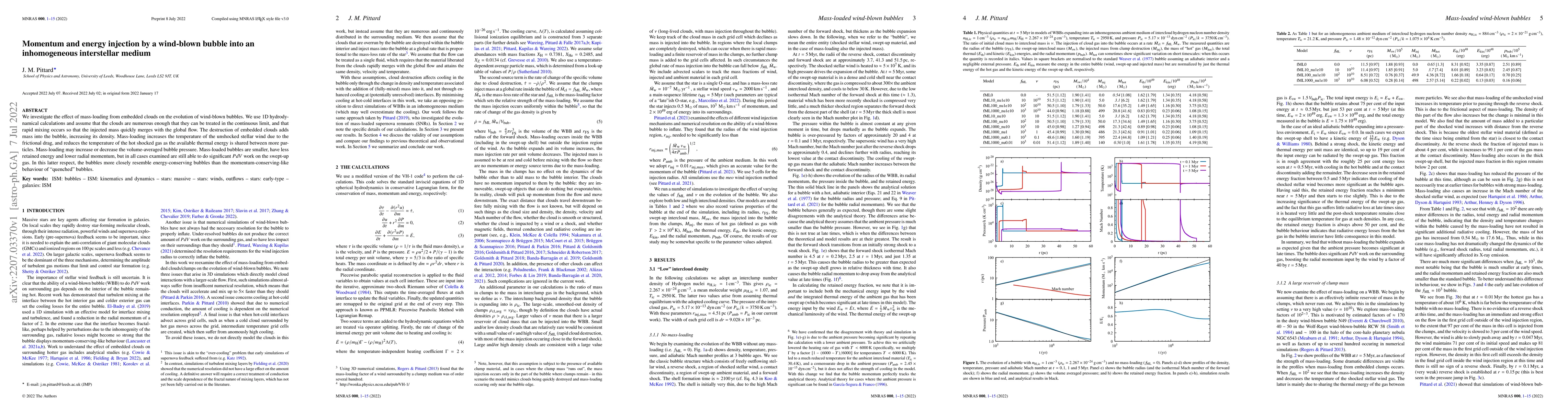 This paper examines how mass-loading from embedded clouds affects wind-blown bubbles in an inhomogeneous interstellar medium, finding that mass-loading increases bubble density and alters pressure, temperature, and momentum, while still allowing significant $PdV$ work on swept-up gas.