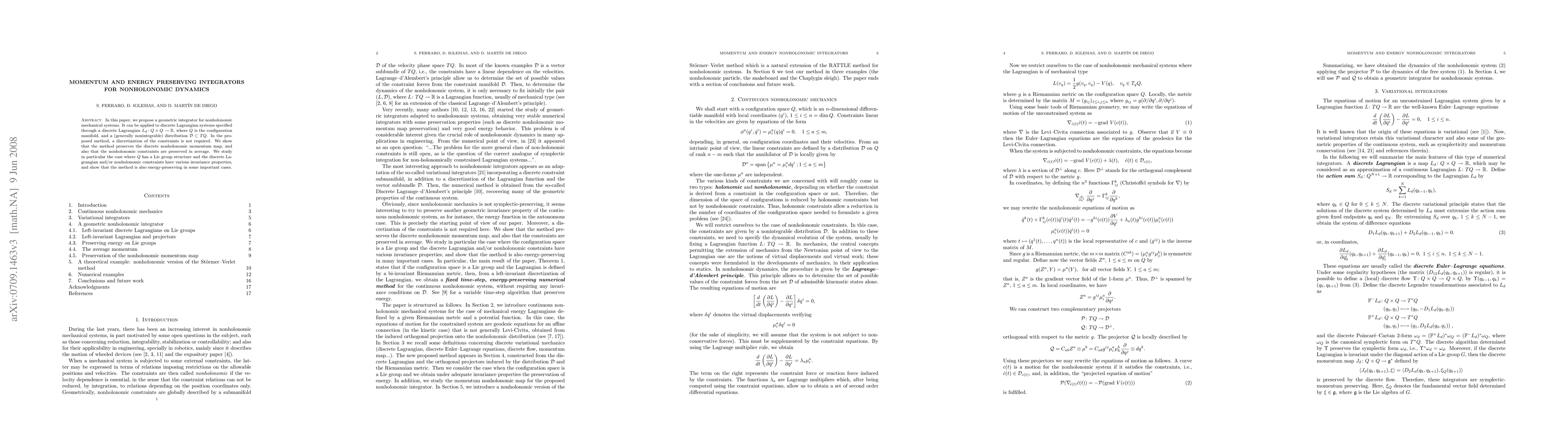 This paper introduces a geometric integrator for nonholonomic mechanical systems that preserves discrete nonholonomic momentum and energy, without requiring constraint discretization. The method is particularly effective for systems with Lie group structure and invariant properties.