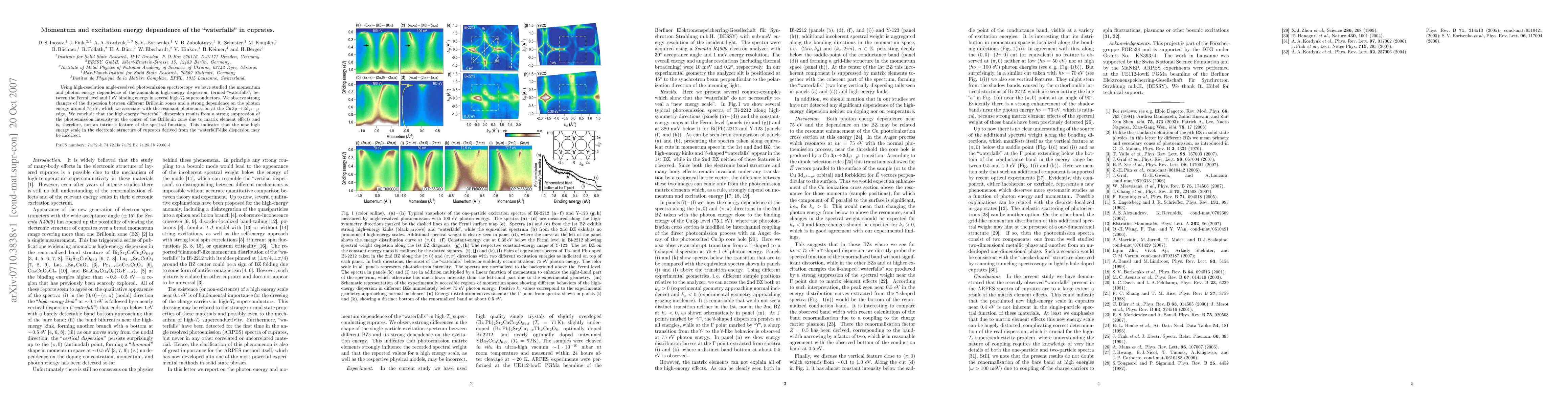 This study reveals the momentum and photon energy dependence of the "waterfalls" in cuprates using high-resolution angle-resolved photoemission spectroscopy. The observed changes in dispersion suggest that the "waterfall" feature is influenced by matrix element effects rather than being an intrinsic spectral function, challenging the interpretation of high-energy scales in cuprates.