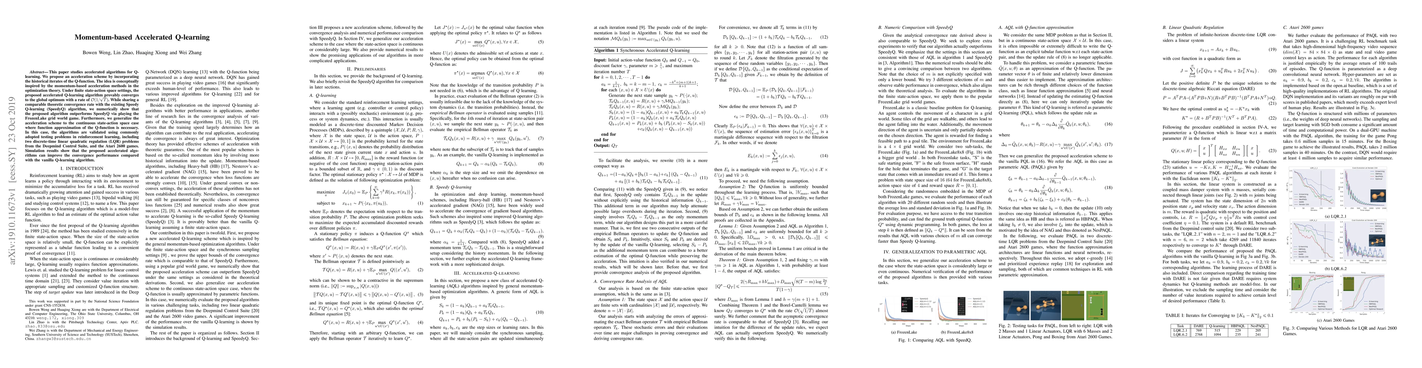 This paper proposes a momentum-based accelerated Q-learning algorithm that leverages historical iterates to converge faster, outperforming existing methods like SpeedyQ in both finite and continuous state-action spaces, as demonstrated through various reinforcement learning tasks.
