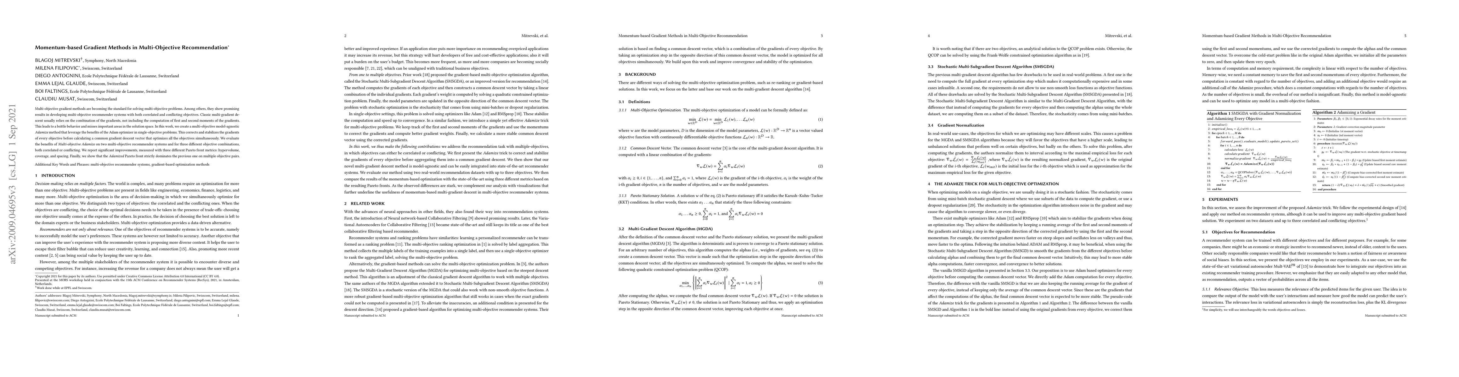 This paper introduces Multi-objective Adamize, a method that improves multi-objective gradient methods in recommendation systems by stabilizing gradients for each objective. It leads to significant improvements in Pareto front metrics.