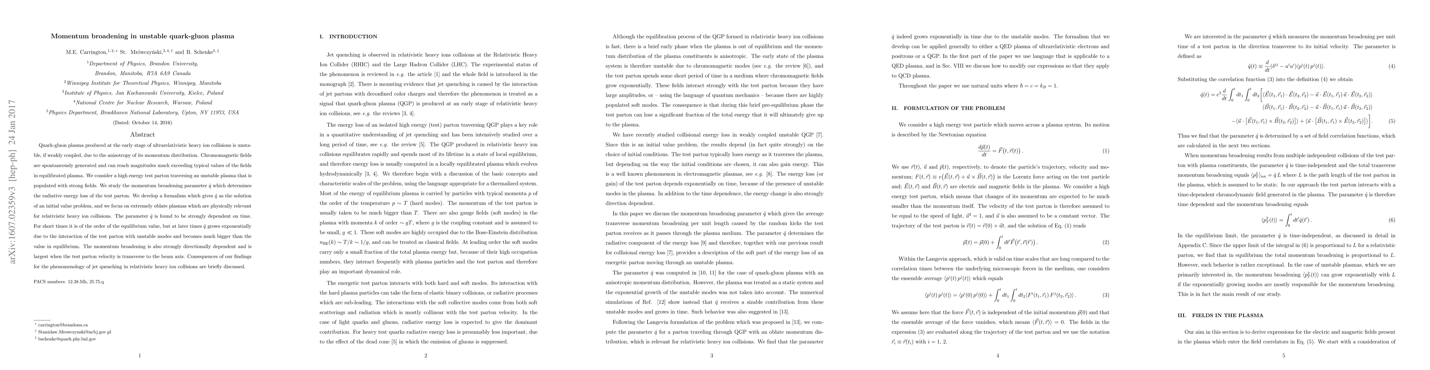 This paper investigates the momentum broadening parameter $\hat q$ in an unstable quark-gluon plasma generated in ultrarelativistic heavy ion collisions, finding that $\hat q$ grows exponentially over time due to interactions with unstable modes, significantly impacting radiative energy loss and jet quenching phenomenology.