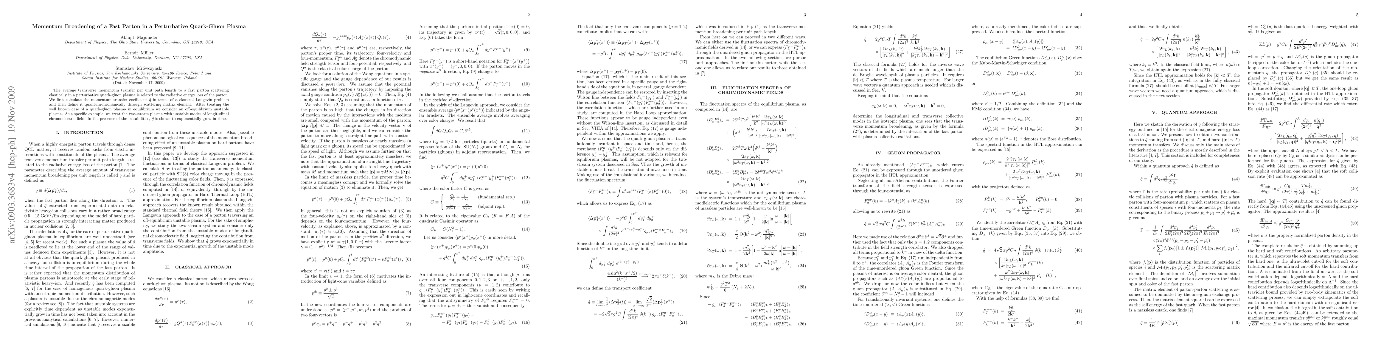 This paper investigates the momentum broadening of fast partons in a perturbative quark-gluon plasma, calculating the momentum transfer coefficient $\hat q$ both classically and quantum-mechanically. It finds that in unstable plasmas, such as the two-stream plasma with longitudinal chromoelectric field instabilities, $\hat q$ grows exponentially over time.