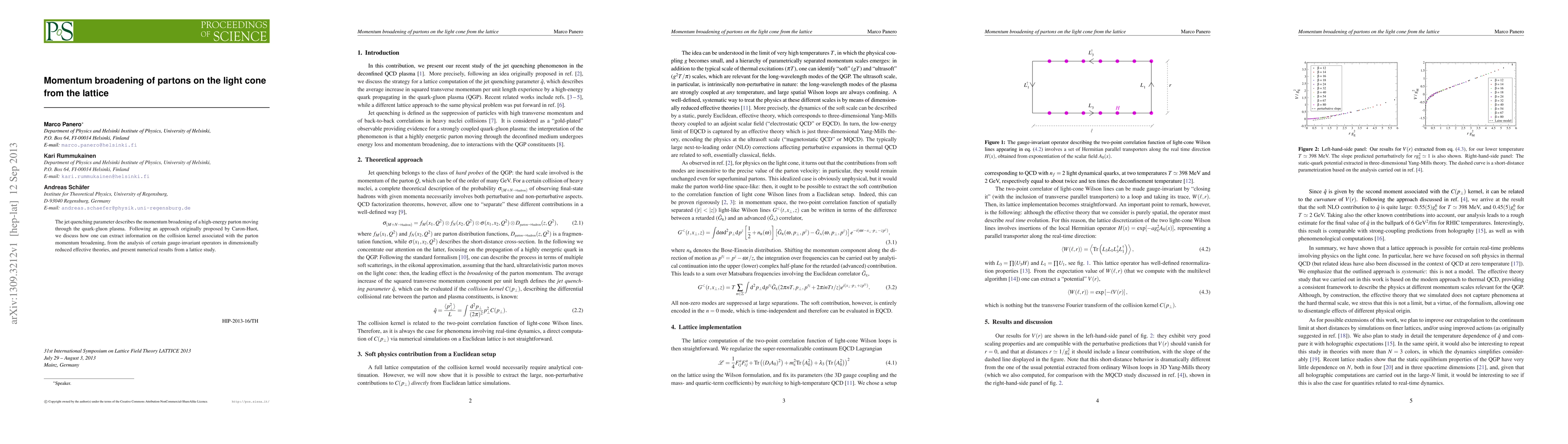 Researchers explored a method to analyze the collision kernel behind parton momentum broadening in the quark-gluon plasma using lattice studies and gauge-invariant operators. They presented numerical results that shed light on the jet quenching parameter.
