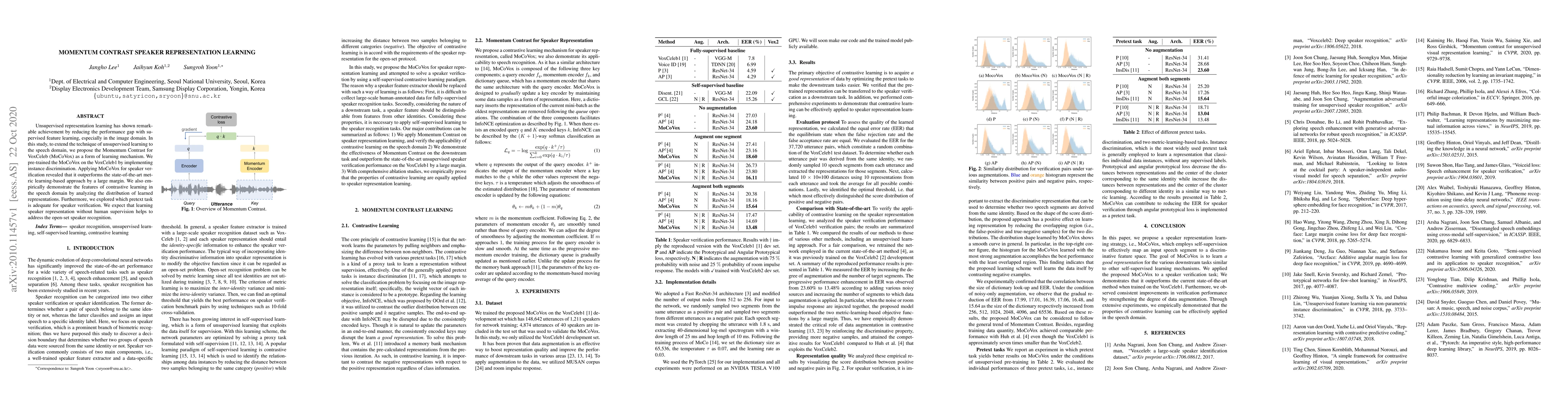 MoCoVox proposes a novel self-supervised learning framework for speaker recognition and verification.