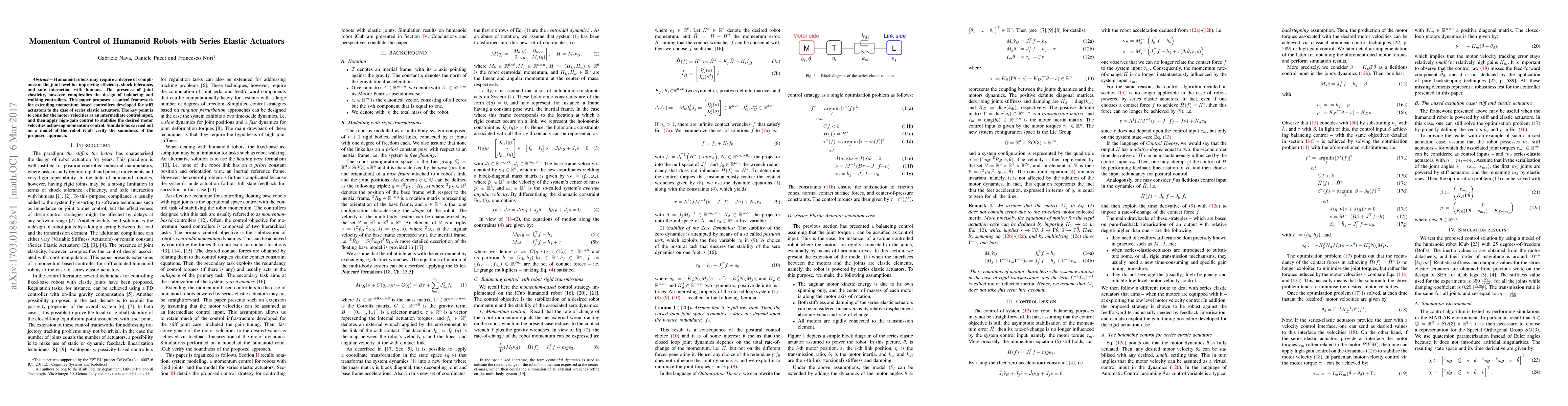 This paper proposes a control framework to extend momentum-based controllers for stiff actuators to series elastic actuators in humanoid robots, focusing on stabilizing desired motor velocities using high-gain control for efficient balance and walking. Simulation results on the iCub robot model confirm the approach's effectiveness.