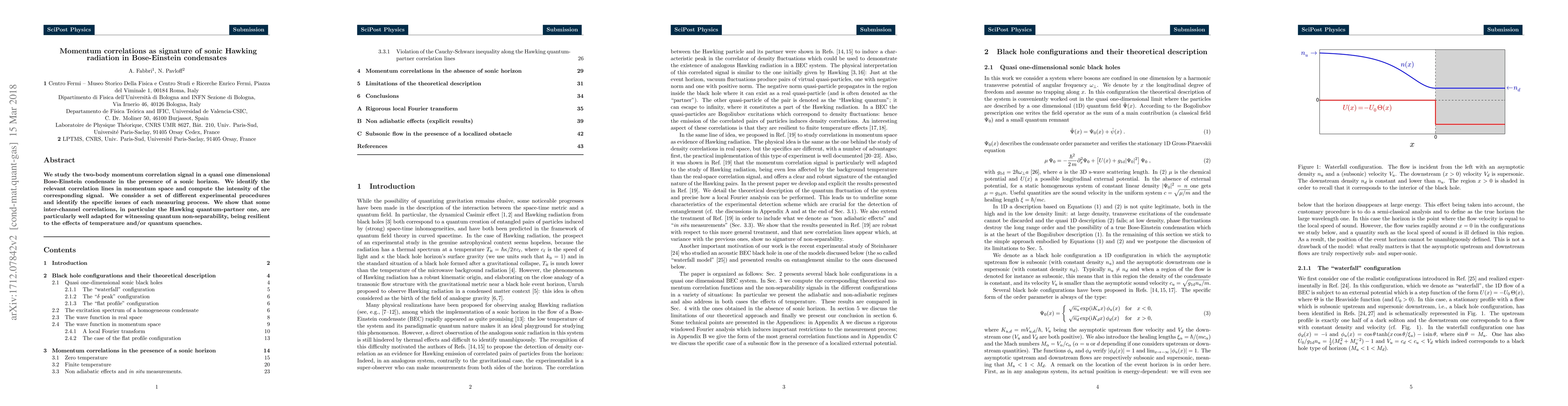 We study the two-body momentum correlation signal in a quasi one dimensional Bose-Einstein condensate in the presence of a sonic horizon. We identify the relevant correlation lines in momentum space and compute the intensity of the corresponding signal. We consider a set of different experimental procedures and identify the specific issues of each measuring process. We show that some inter-channel correlations, in particular the Hawking quantum-partner one, are particularly well adapted for witnessing quantum non-separability, being resilient to the effects of temperature and/or quantum quenches.